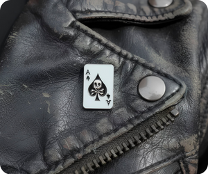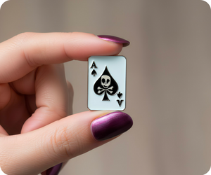 ¡Sé el as de tu juego con este elegante pin de calavera y espadas! Es el accesorio perfecto para que todos sepan que eres el más listo del grupo. Adorna tu chaqueta, mochila o sombrero con este elegante y elegante pin. ¡Atrévete a ser diferente y muestra tu estilo atrevido y audaz!