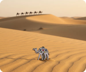Journey through style with this magnificent Arabian camel colour pattern pin badge! Featuring an intricately detailed camel design in rich, warm hues, this enamel badge captures the majesty of the desert's most iconic creature. Ideal for animal lovers, travel enthusiasts, or anyone enchanted by Middle Eastern culture, it clips effortlessly to jackets, bags, and accessories. Durable and beautifully crafted, this eye-catching badge is a fun conversation starter that celebrates nature's remarkable desert dwellers. Collect them and explore the world one badge at a time!