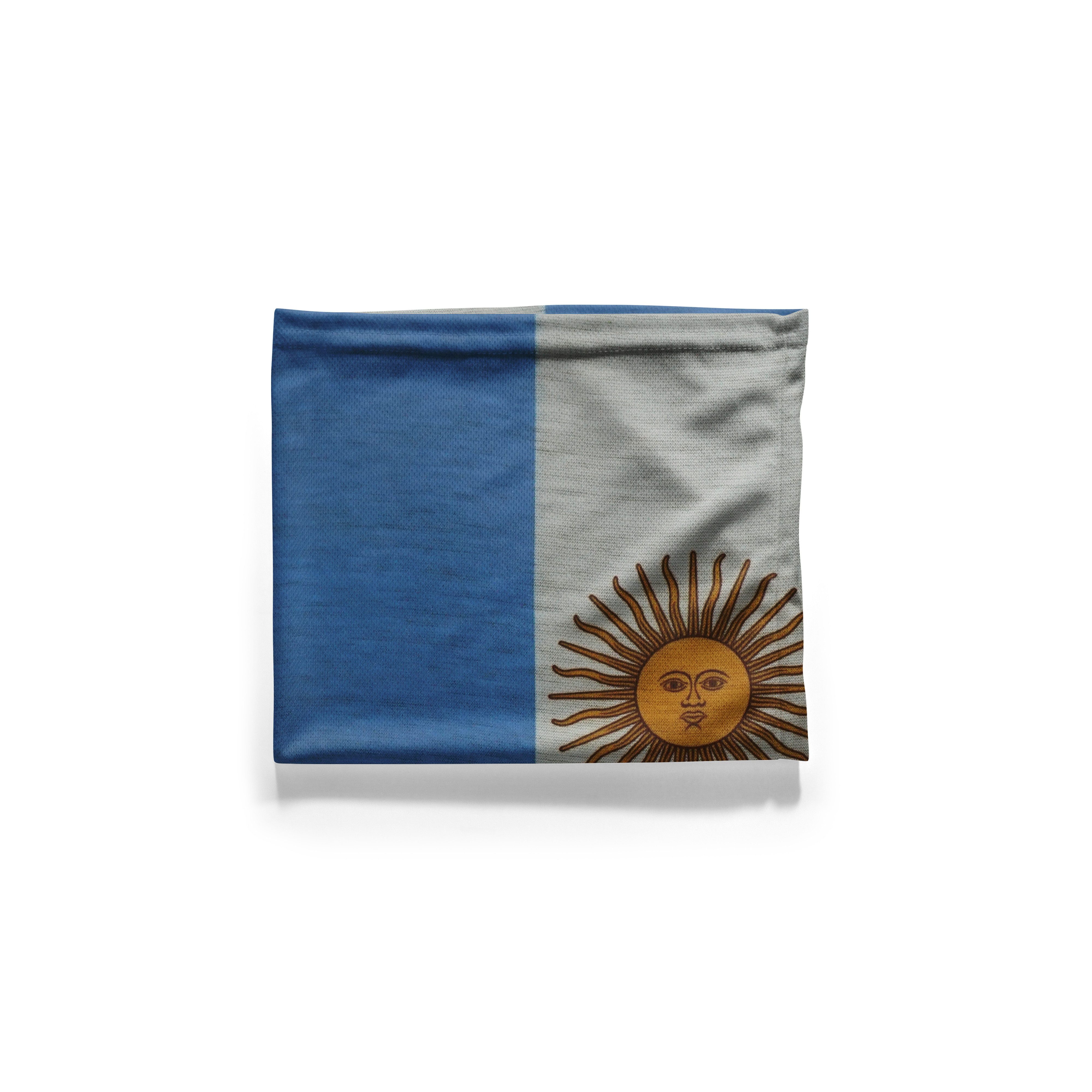 Celebrate national pride with this beautifully designed Argentina flag neck gaiter, featuring the iconic sky-blue and white vertical stripes accented by the radiant "Sun of May." This powerful emblem, centered proudly on the front, is a historic symbol of freedom and resilience, rooted in the country's struggle for independence. The rear side includes a clean continuation of the flag pattern with a bold, stylized “ARGENTINA” text at the base, adding a sharp contemporary edge to the traditional design.
