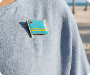¡Muestra tu amor por Aruba con nuestro distintivo pin con la bandera! Perfecto para agregar un toque de personalidad a cualquier atuendo. Llévalo en tu camisa, sombrero o bolso y hazle saber al mundo que eres un orgulloso portador de este pin de esta Isla Feliz.