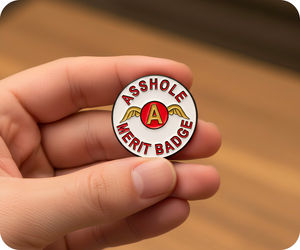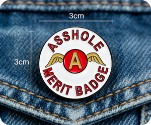 Wear your cheeky confidence proudly with the Asshole Merit Pin Badge. This playful accessory celebrates your bold attitude and sharp wit, perfect for those who aren’t afraid to stand out and own their edge. Pin it on your jacket or bag for a fun, fearless vibe.