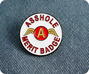 Asshole Merit White Pin Badge