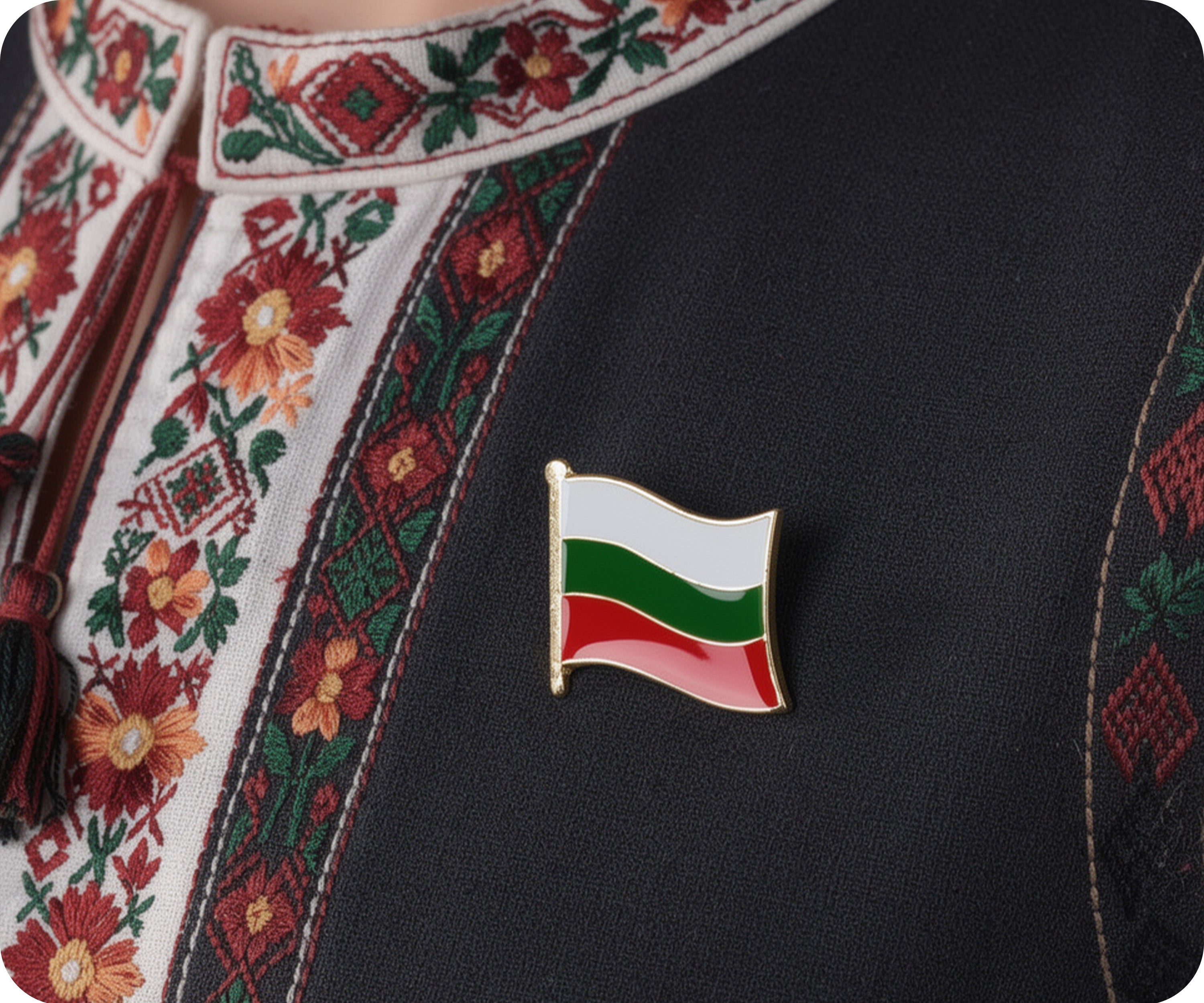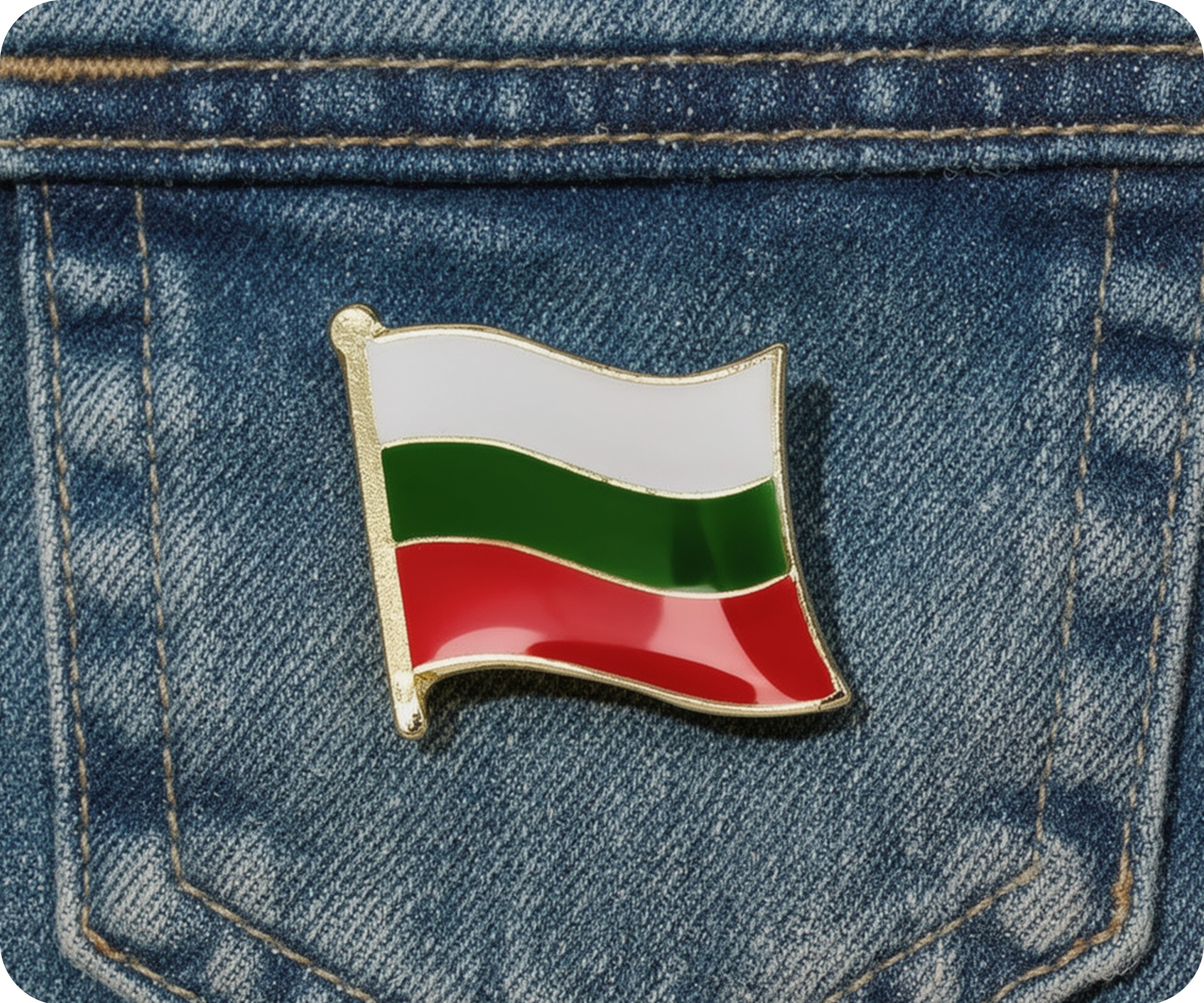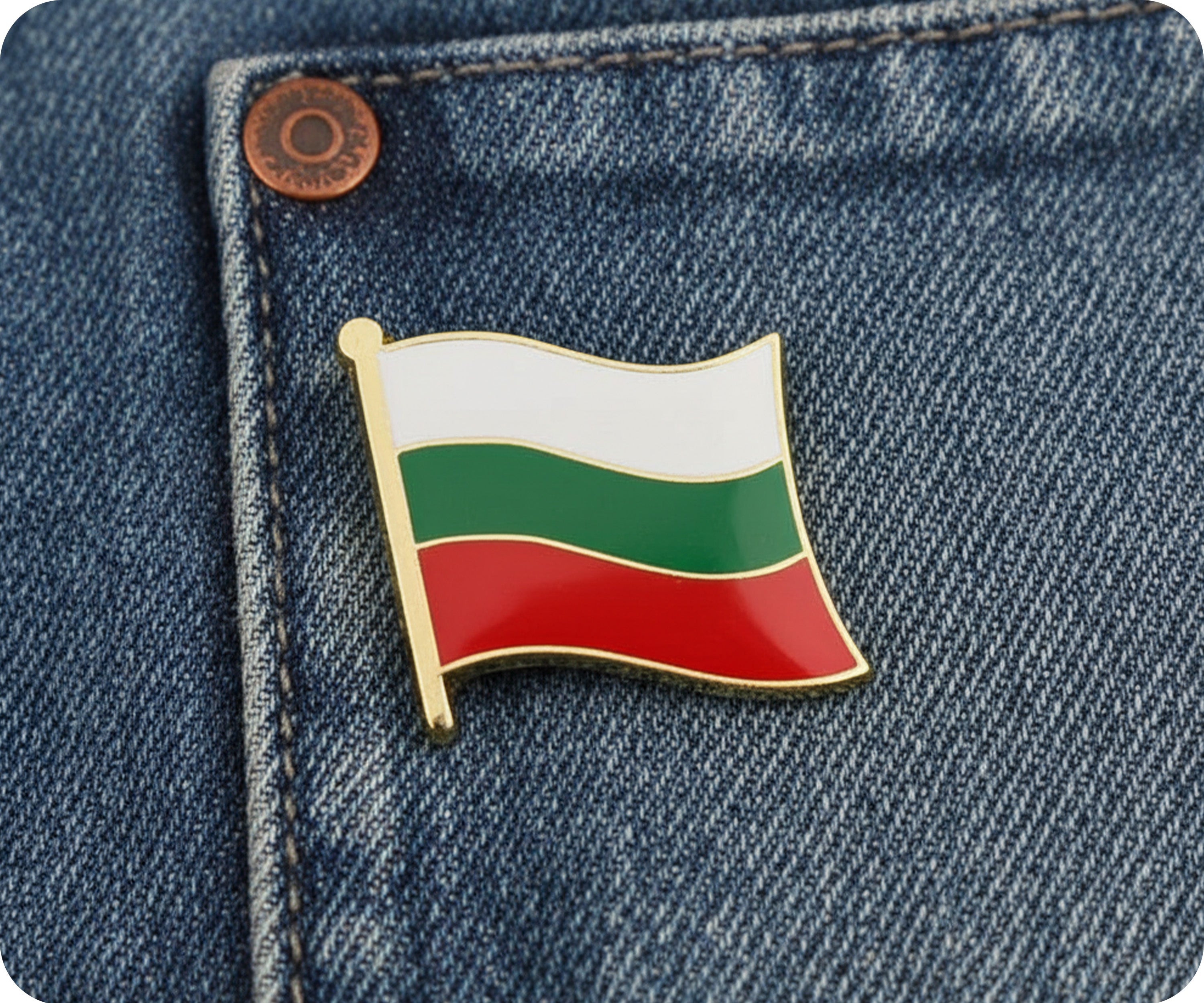 Muestra tu orgullo búlgaro con este original pin con los llamativos colores de la bandera de Bulgaria. Perfecto para cualquier ocasión, este pin añade un toque de fantasía a cualquier atuendo y, al mismo tiempo, representa tu amor por tu país de origen.