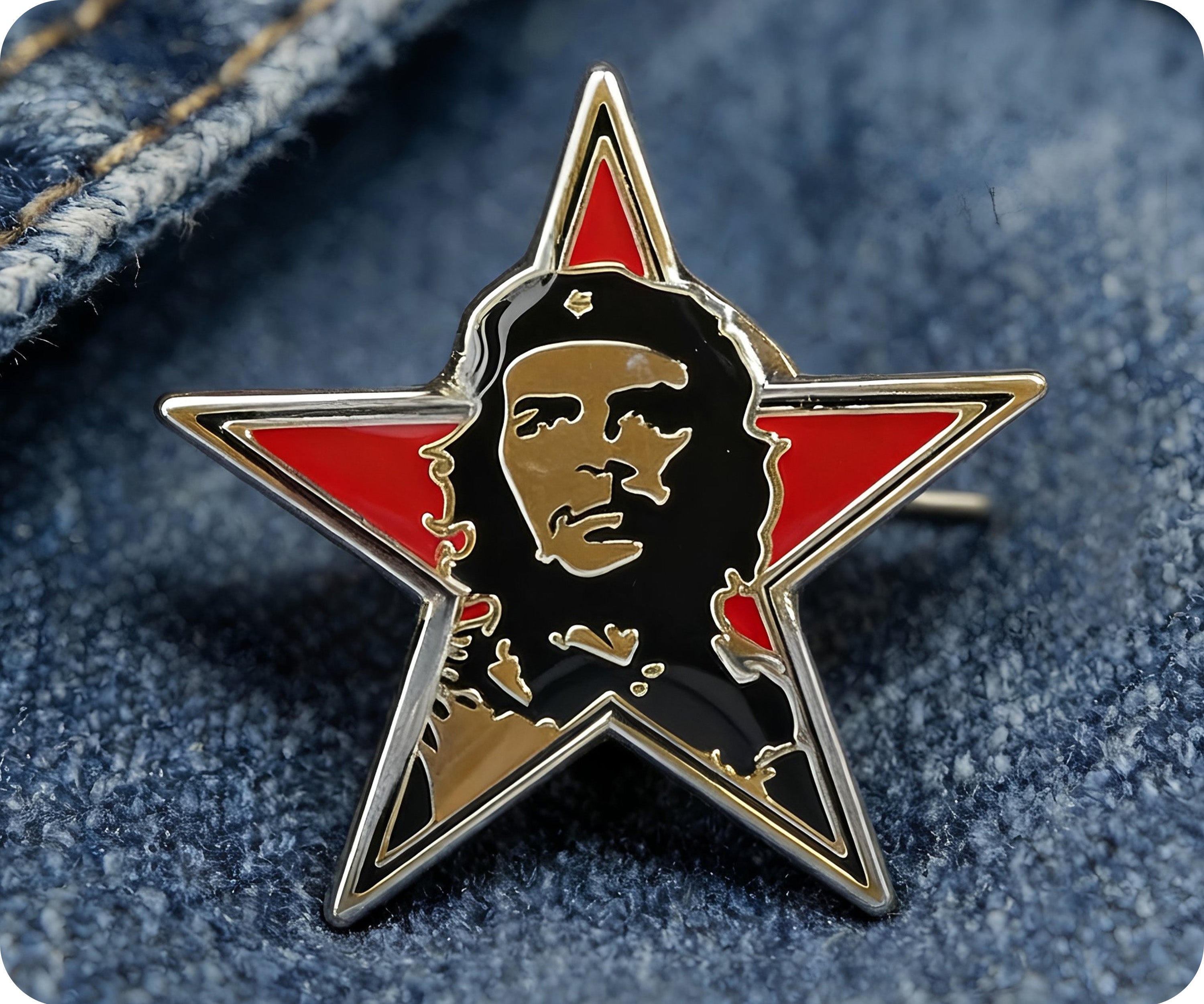 Revolutionize your fashion game with our Che Guevara Star Pin Badge. Showcasing the iconic Che Guevara image, this badge is a fun and quirky addition to any outfit. Wear it with pride and channel your inner rebel. (Don't tell Fidel, but this pin is out of this world!)