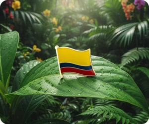 Display your Colombian spirit with this cheerful flag pin badge! Featuring the distinctive yellow, blue, and red stripes of Colombia's national flag, it's a fantastic way to celebrate South American heritage or show your connection to this vibrant nation. Pin it to your jacket, bag, or anywhere you fancy a splash of colour. A small badge with loads of Colombian charm!