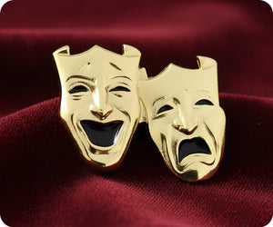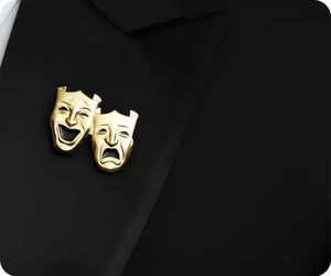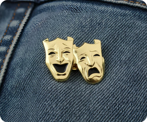 Wear a badge with a twist! This Comedy and Tragedy Drama Gold Pin Badge adds a touch of drama to any outfit. (Perfect for thespians and theater lovers alike!)