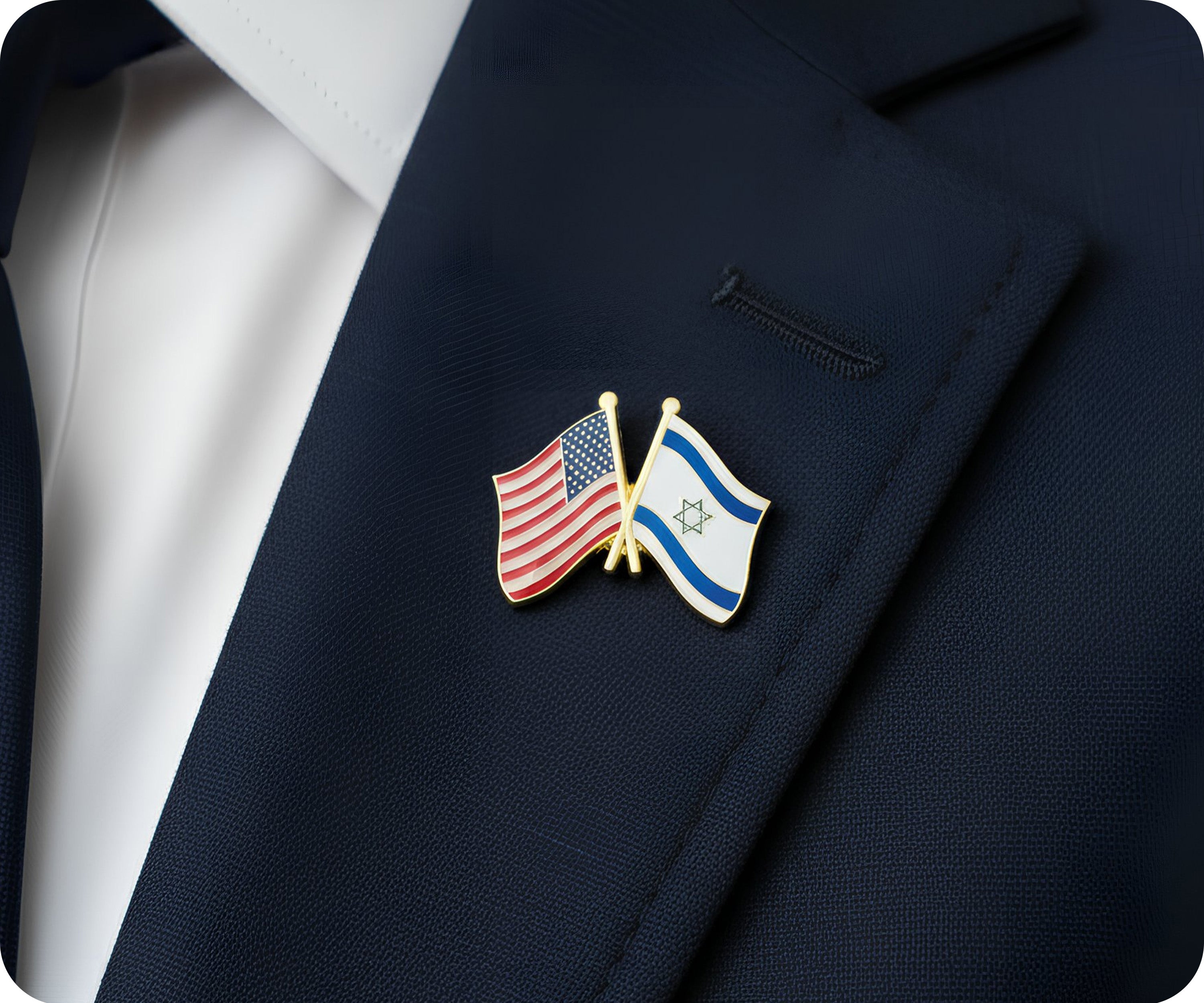¡Muestra al mundo tu amistad especial con los Estados Unidos de América (EE. UU.) e Israel! Esta insignia de esmalte duro mide 2,5 cm x 1,9 cm y tiene un cierre de mariposa para que puedas asegurarla con estilo. ¡Úsala para mostrar tu amor por Israel y Estados Unidos!