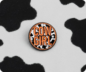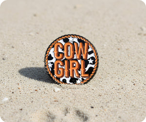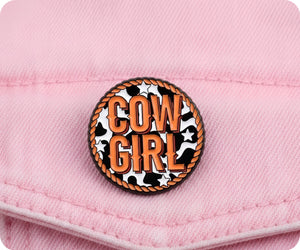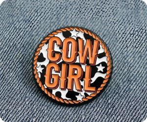 Yee-haw, show off your inner cowgirl with our Cow Girl Round Pin Badge. Perfect for Western enthusiasts, this pin adds a touch of charm to any outfit. Saddle up and style out