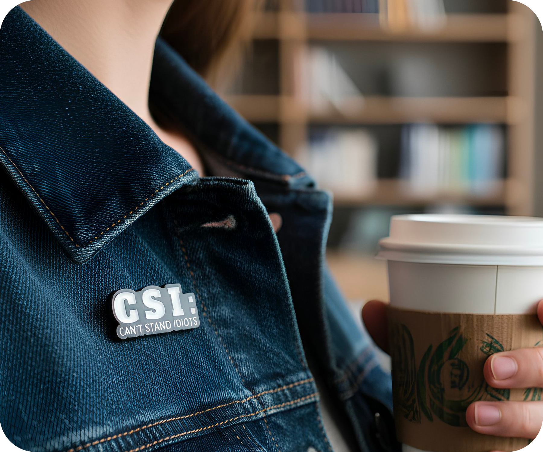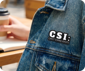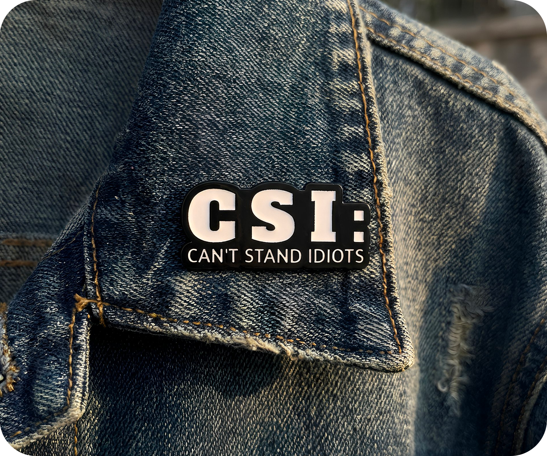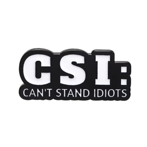 For the witty soul with zero patience for nonsense, this CSI Can't Stand Idiots Pin Badge is your cheeky badge of honour. Clip it to your bag, jacket, or anywhere you want to broadcast your no-nonsense attitude with a laugh. Whether you're dealing with workplace chaos, family drama, or just life's endless parade of foolishness, this badge says it all with tongue firmly in cheek. A fun way to signal that you've got standards, a sharp sense of humour, and absolutely no time for the ridiculous. Perfect for anyone who appreciates a good laugh at life's absurdities.
