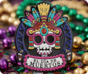 Celebrate the vibrant spirit of Día de Muertos with this striking pin badge! Featuring iconic skull imagery and bold Mexican-inspired design, it's the perfect way to honour this colourful tradition. Whether you're pinning it to your jacket, bag, or lapel, this little accessory packs personality and cultural flair. A must-have for Day of the Dead enthusiasts and anyone who loves meaningful, eye-catching jewellery. Wear your pride with style!