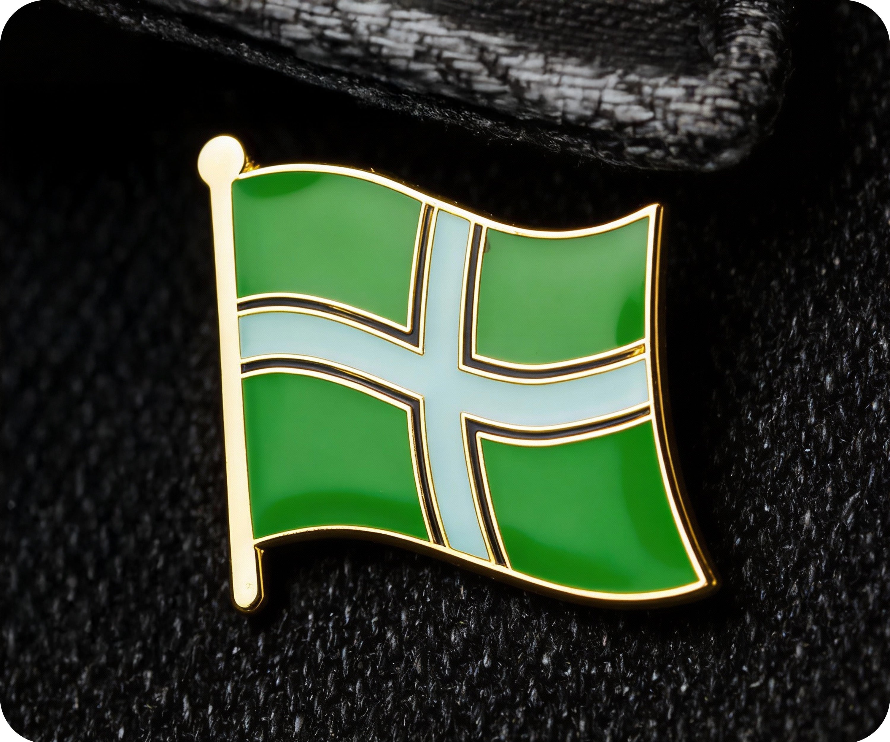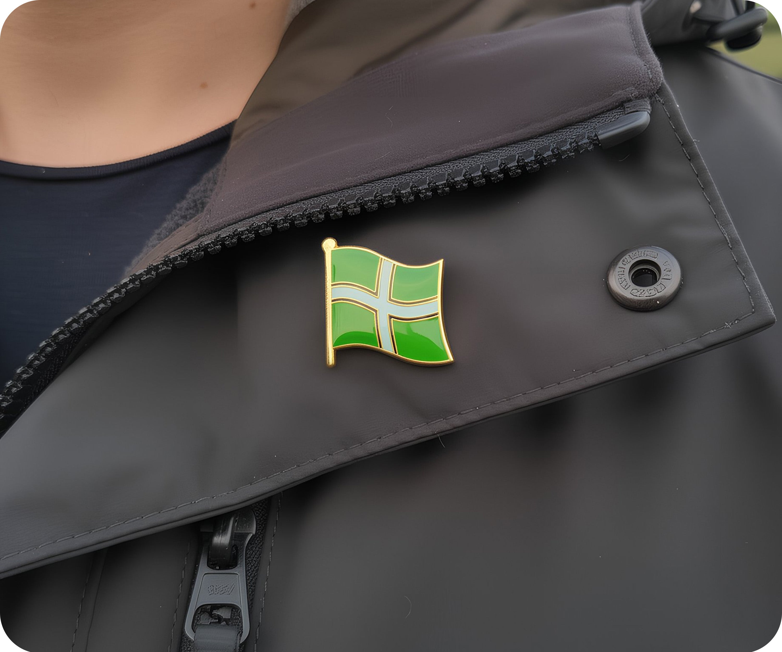 Muestra tu orgullo por Devon con este encantador pin con la bandera regional. Muestra tu amor por todo lo relacionado con Devonshire de una manera única y divertida. Agrega un toque de originalidad a tu atuendo con este divertido accesorio. ¡Perfecto para un verdadero devoniano de corazón!
