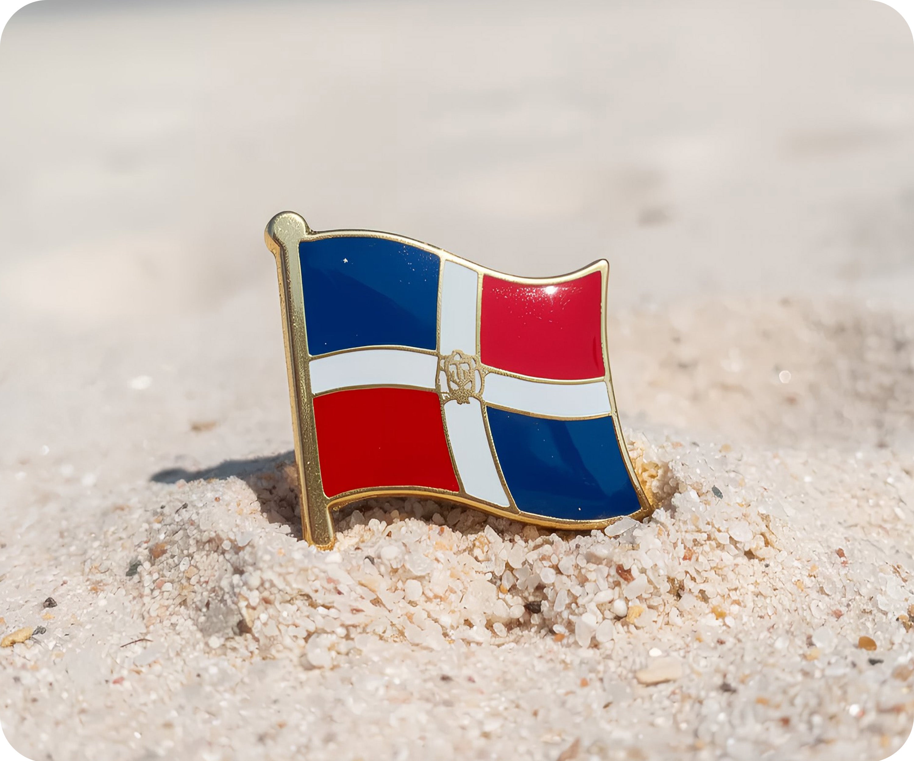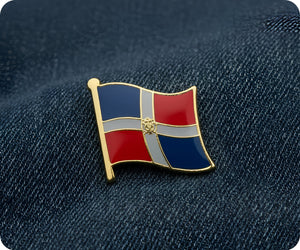 Flaunt your Dominican Republic pride with this vibrant flag pin badge! Sporting the bold blue, red, and white colours of the national flag, it's ideal for celebrating Caribbean heritage or showing love for this island nation. Fasten it to your collar, bag, or anywhere you want to make a colourful statement. A pint-sized accessory with island-sized personality!