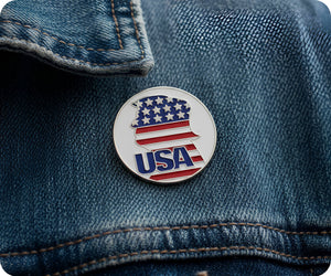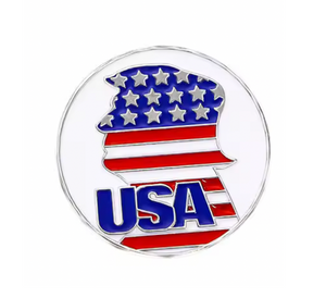 Make a statement with this Donald Trump USA Pin Badge. Perfect for showing off your patriotism (and sense of humor), this pin features a caricature of the former president with the American flag as his hair. Guaranteed to spark conversations and get a few laughs (or eye rolls). Limited quantity available.