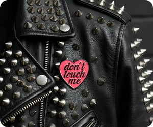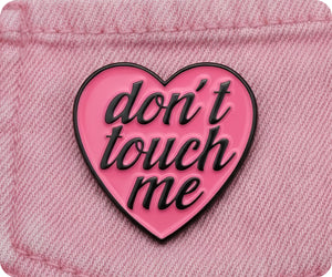 Wear your heart on your sleeve (or lapel) with our Don't Touch Me Love Heart Pin Badge. This playful accessory will add some quirk to any outfit and send a clear message - hands off! A stylish statement piece with a humorous twist.