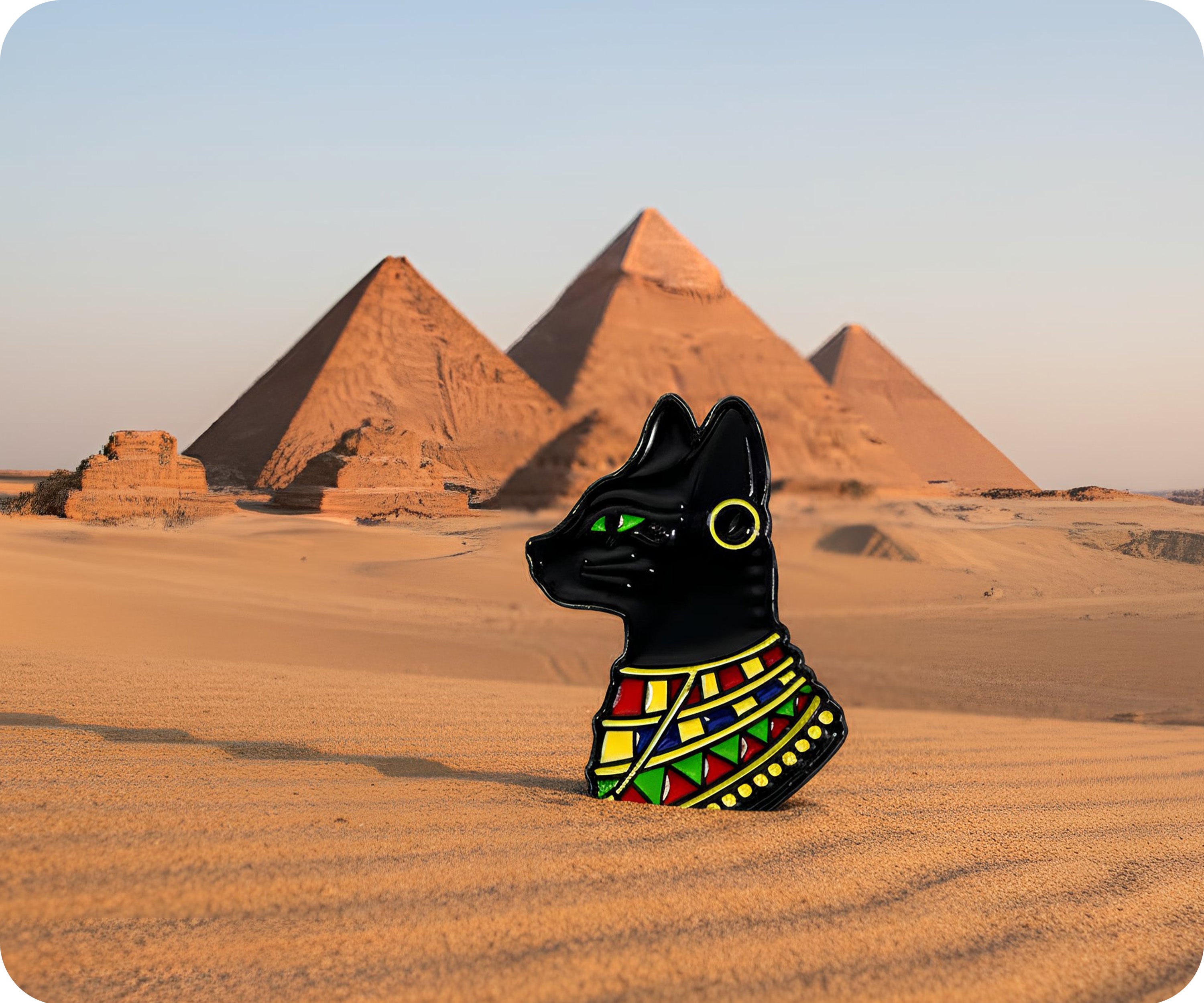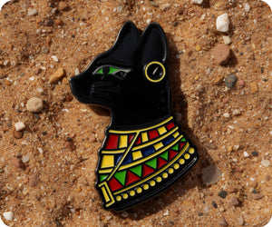 Unleash your inner feline with our Egyptian Cat Head Pin Badge. This quirky accessory adds a touch of playfulness to any outfit. (Meowvelous statement piece!)