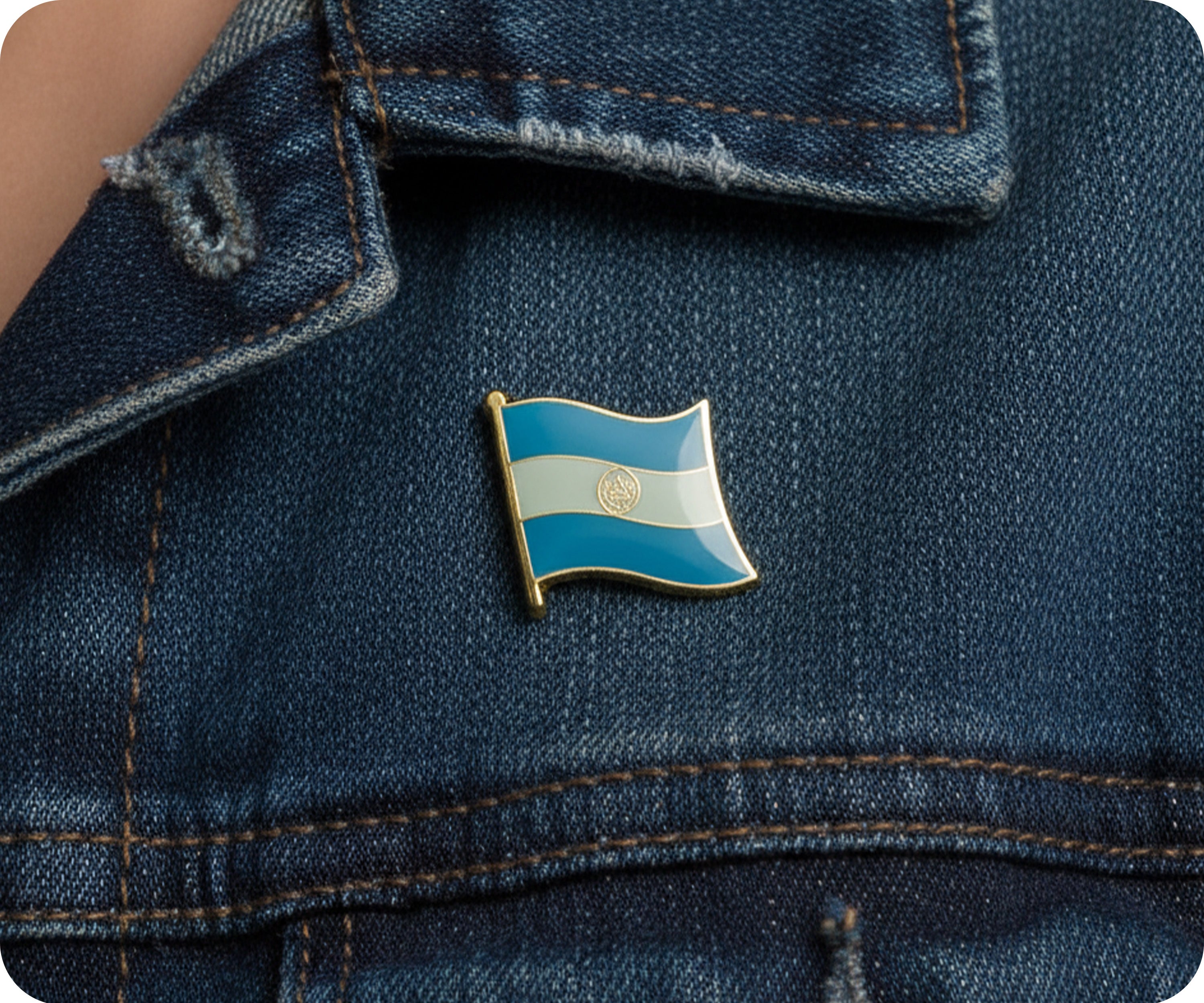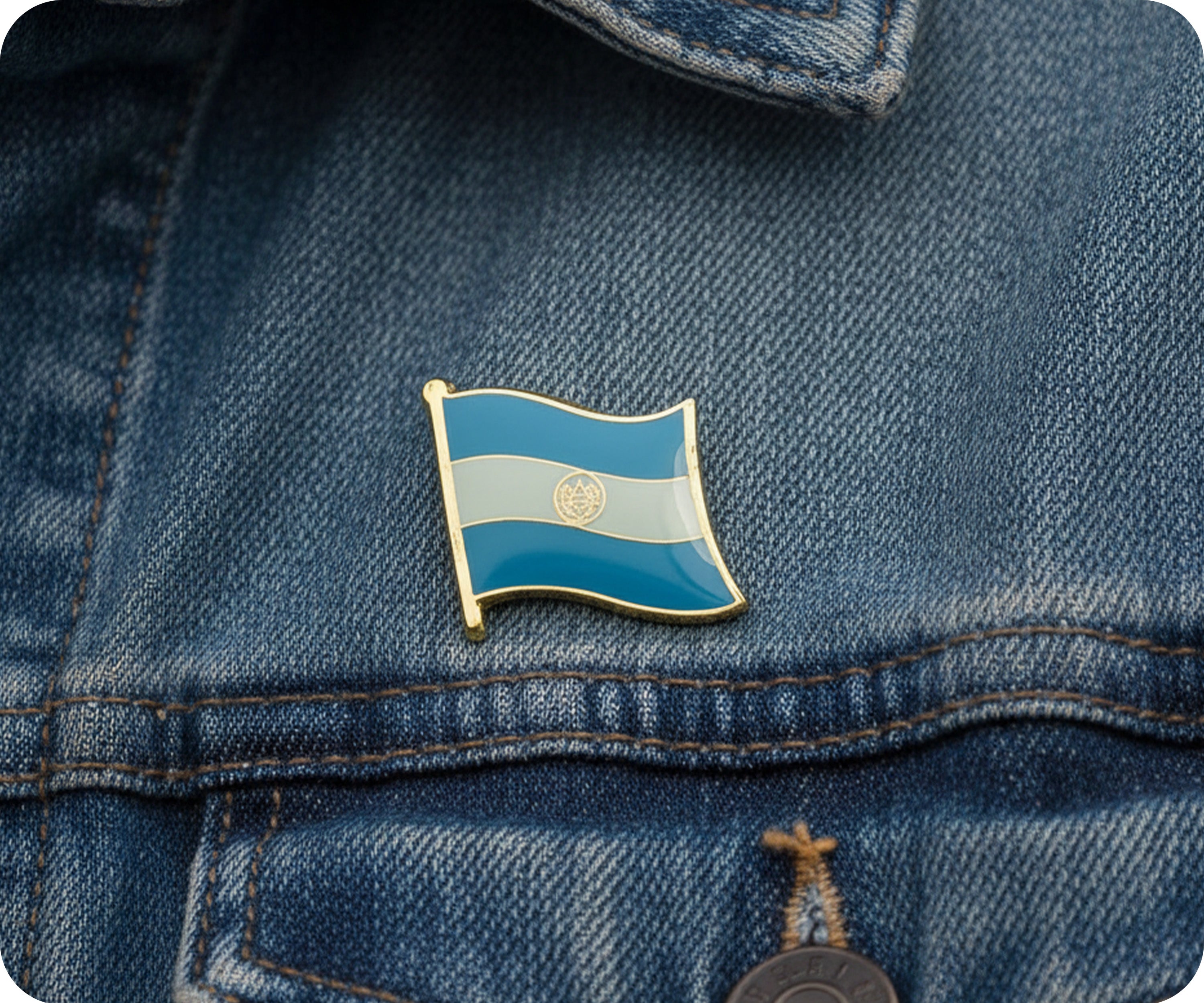 ¡Muestra tu orgullo por El Salvador con este distintivo pin con la bandera! Perfecto para mostrar tu amor por el país o para agregar un toque de personalidad a tu atuendo. Fabricado con materiales de alta calidad para un uso duradero. (¡Sujétalo con un alfiler y deja que brille tu lado peculiar! 🇸🇻)