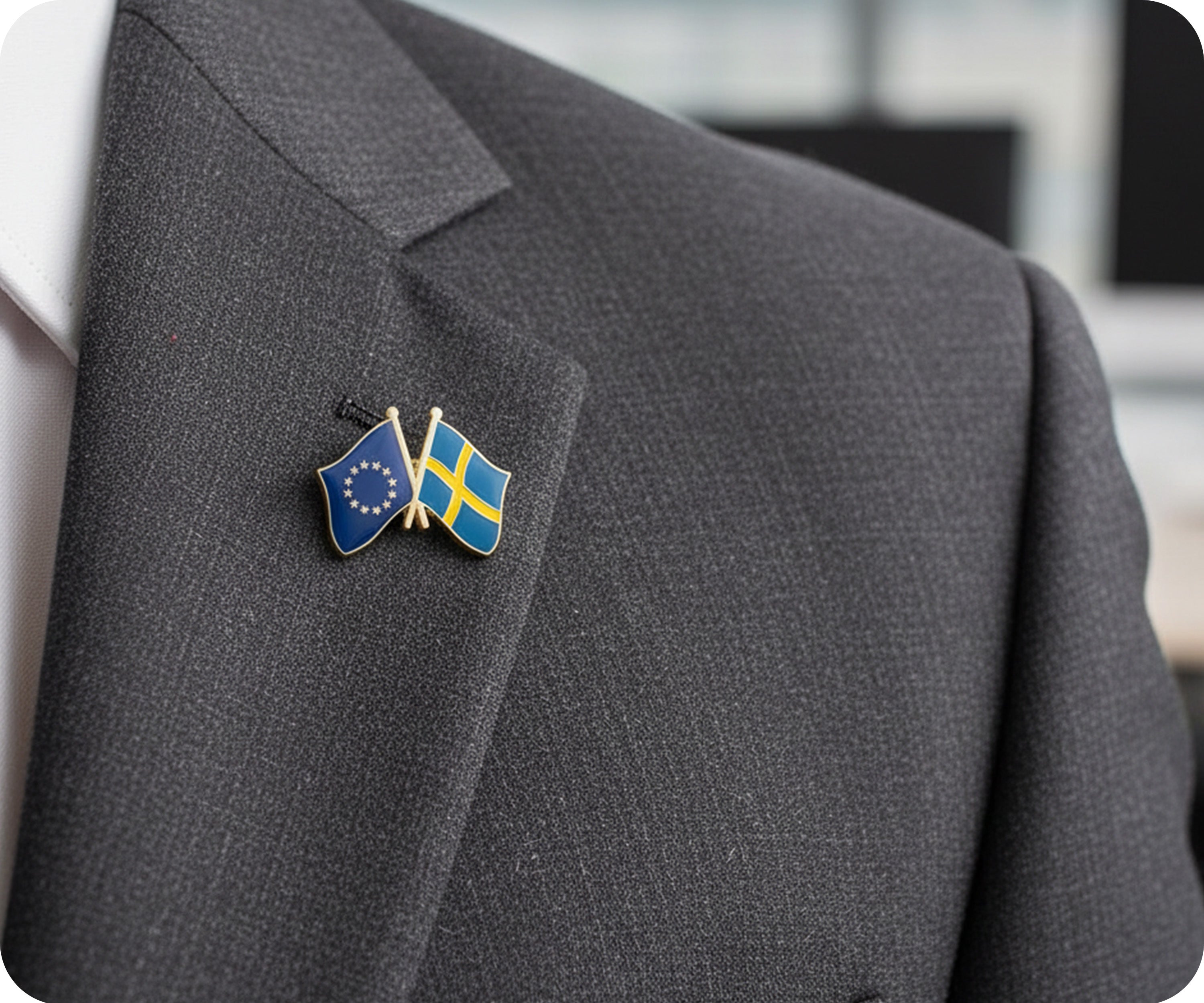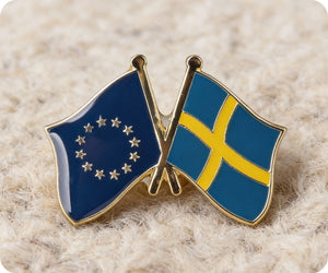 Demuestra tu amistad con la Unión Europea y Suecia con este distintivo exclusivo. Perfecto para cualquier entusiasta de la UE o con una conexión con Suecia. ¡Llévalo con orgullo y difunde tu amor! (¡No te preocupes, viene con ambas banderas!)