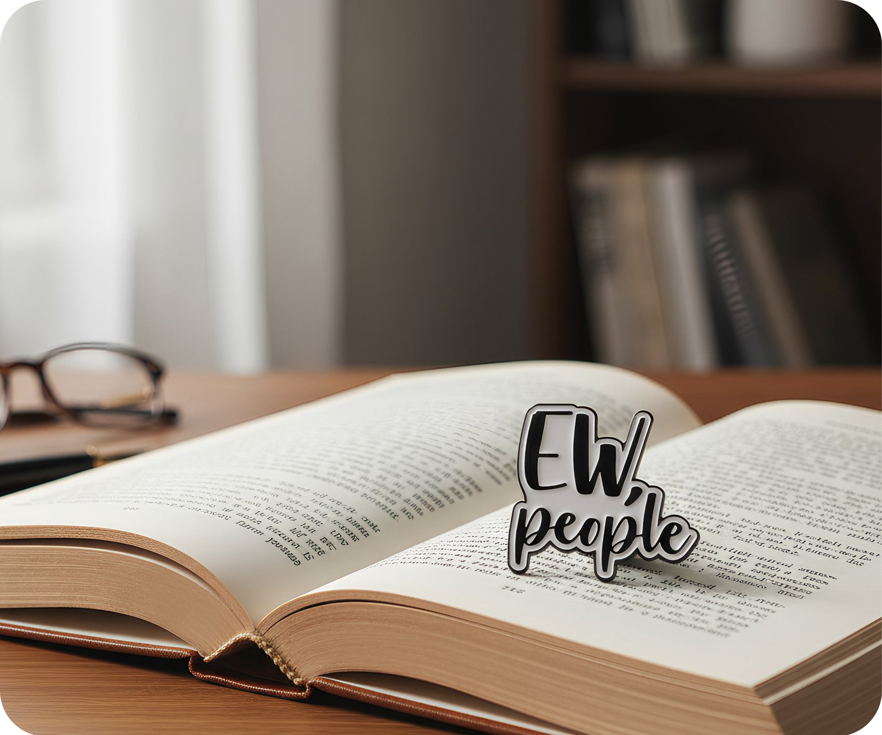 Unleash your inner introvert with this Ew, People Pin Badge. (Finally, a way to keep those pesky social interactions at bay.) Wear it proudly on your jacket or bag and let the world know your true feelings. No small talk needed. Limited quantities available, get yours now!