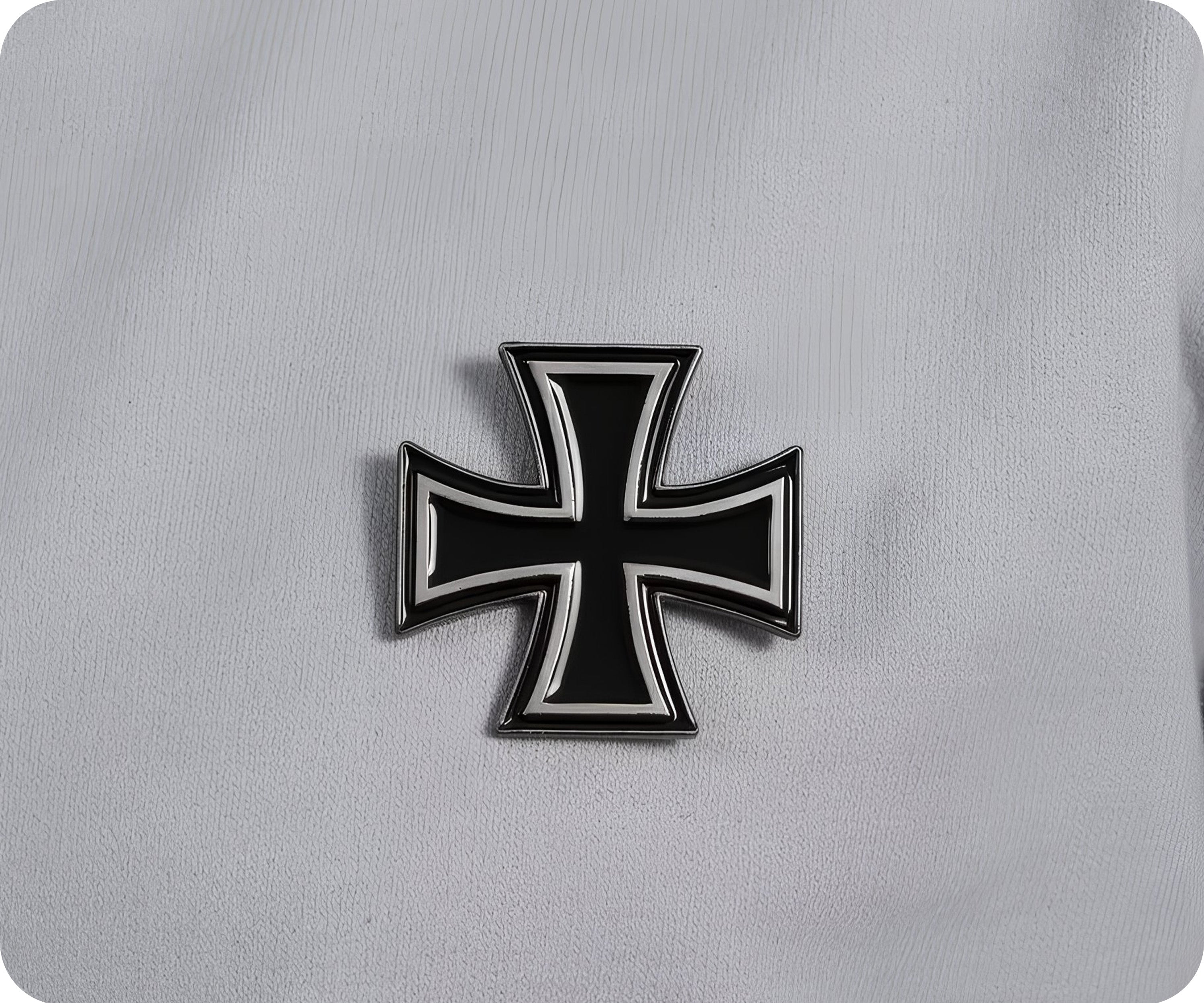 Show off your appreciation for historical symbolism with this striking German Iron Cross Black Pin Badge. Crafted with bold black detailing, this classic emblem makes a statement on jackets, bags, or collector displays. Whether you're a history buff, military enthusiast, or simply love distinctive accessories, this pin brings timeless character to your everyday style. Compact and easy to wear, it's the perfect way to express your interests with flair and personality.