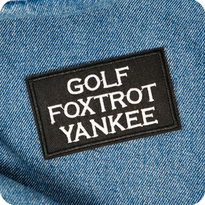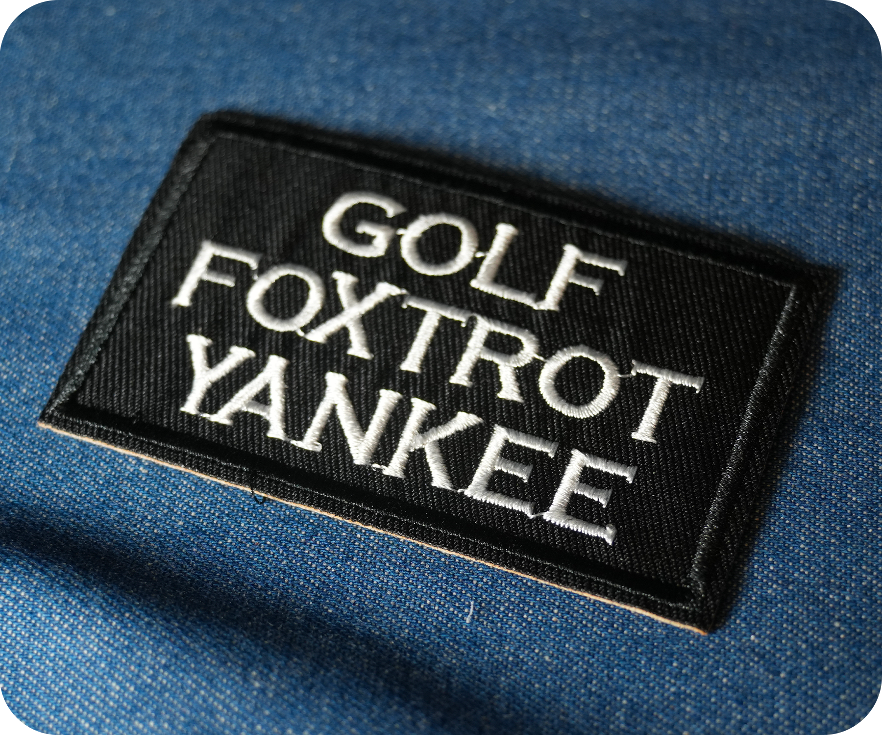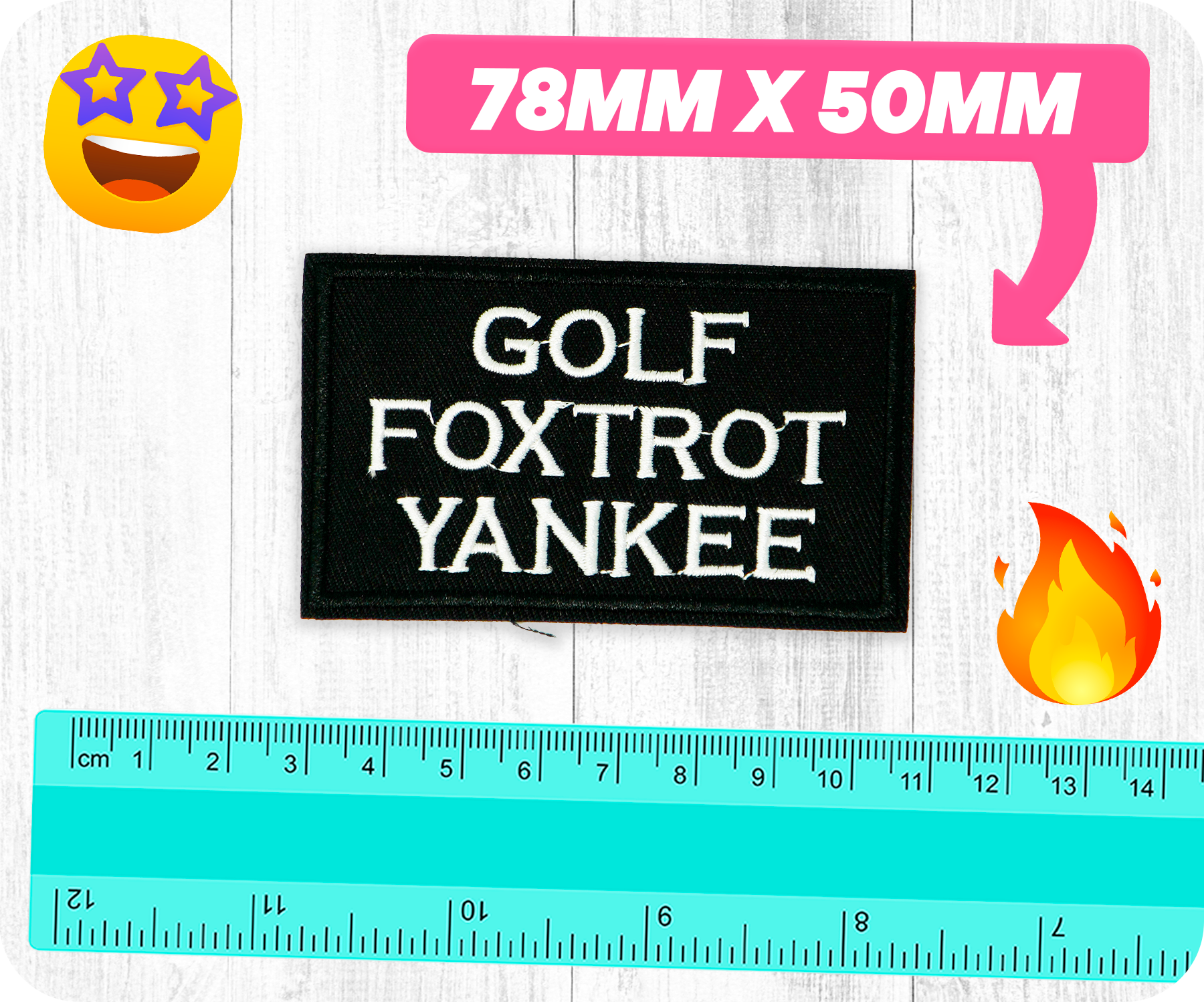 GFY Gold Foxtrot Yankie Funny Black Badge Iron On Patch (7.8 x 5cm)