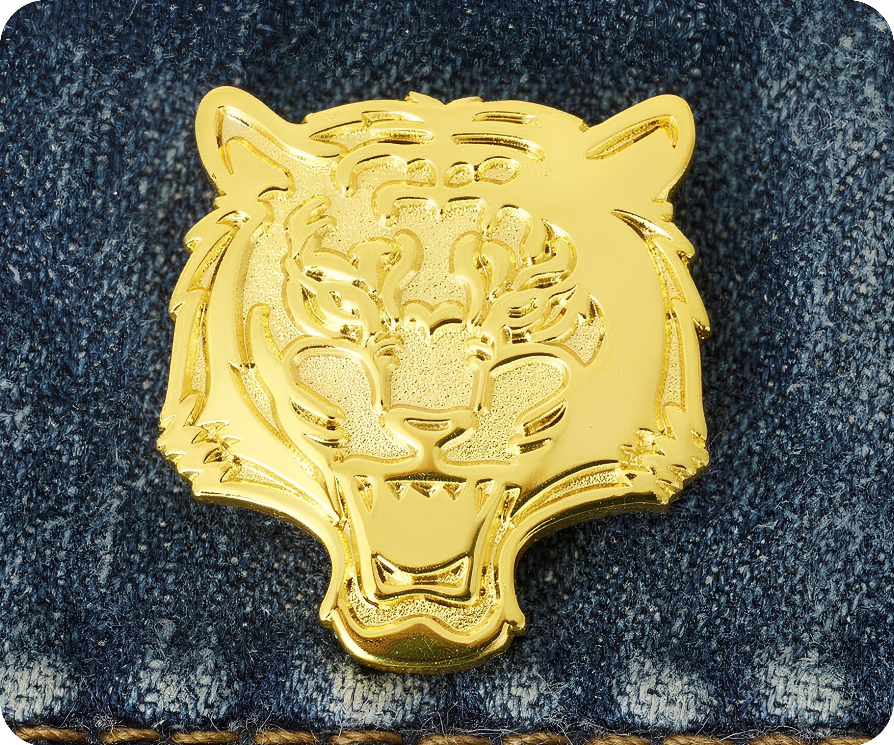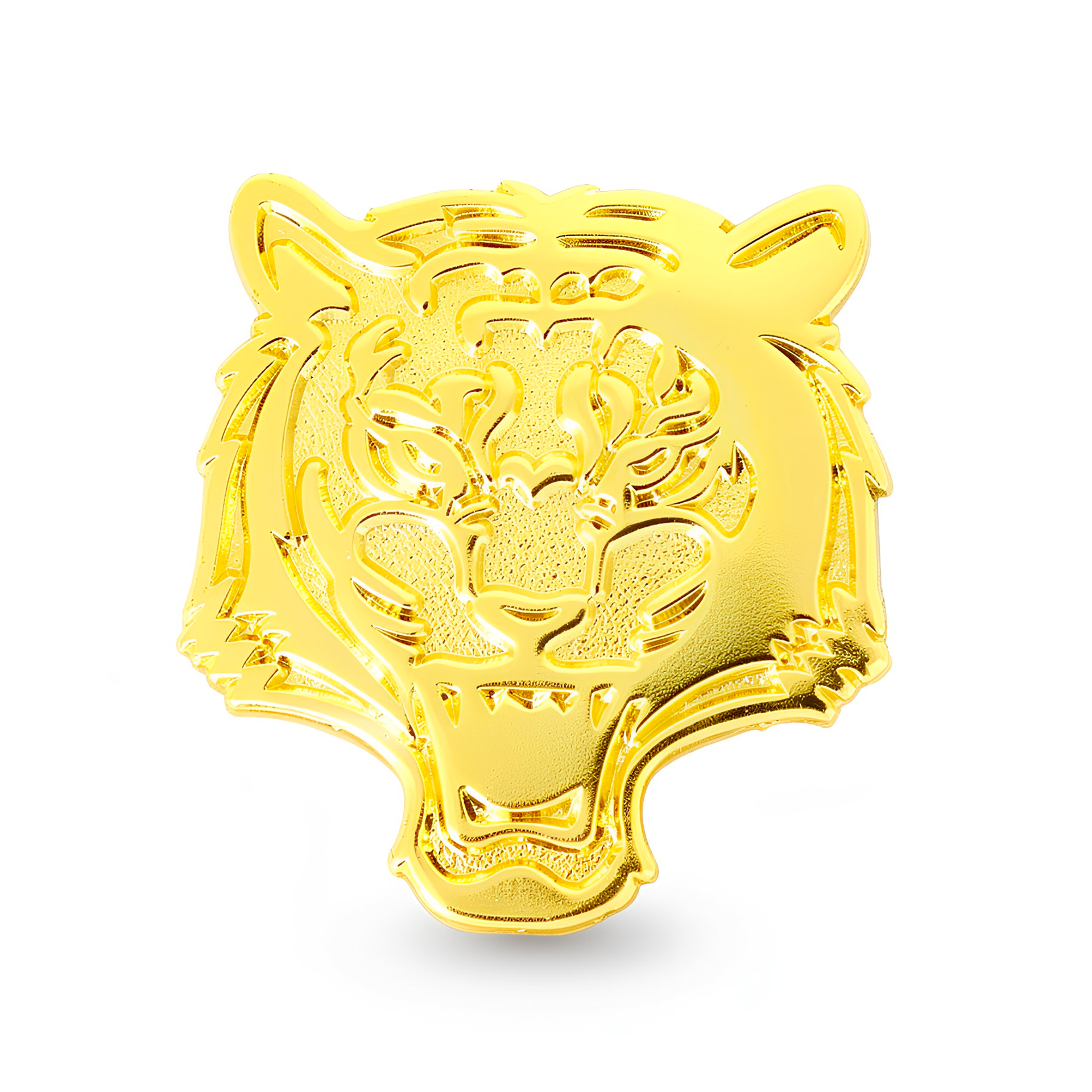 Unleash your wild side with our Golden Tiger Pin Badge! Made from gold-plated metal, this badge adds a touch of fierceness to any outfit. Show off your unique style and love for animals with this playful accessory. (Roar!)