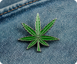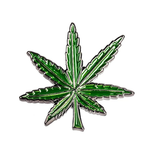 Pin con forma de hoja verde de marihuana