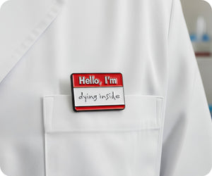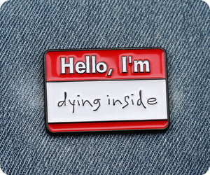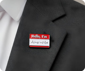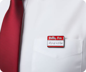 Express your inner turmoil with our Hello, I'm Dying Inside Pin Badge. Wear it proudly and let the world know that you're suffering (in a fun, quirky way). Makes a great conversation starter and gift for the sarcastic and self-aware.