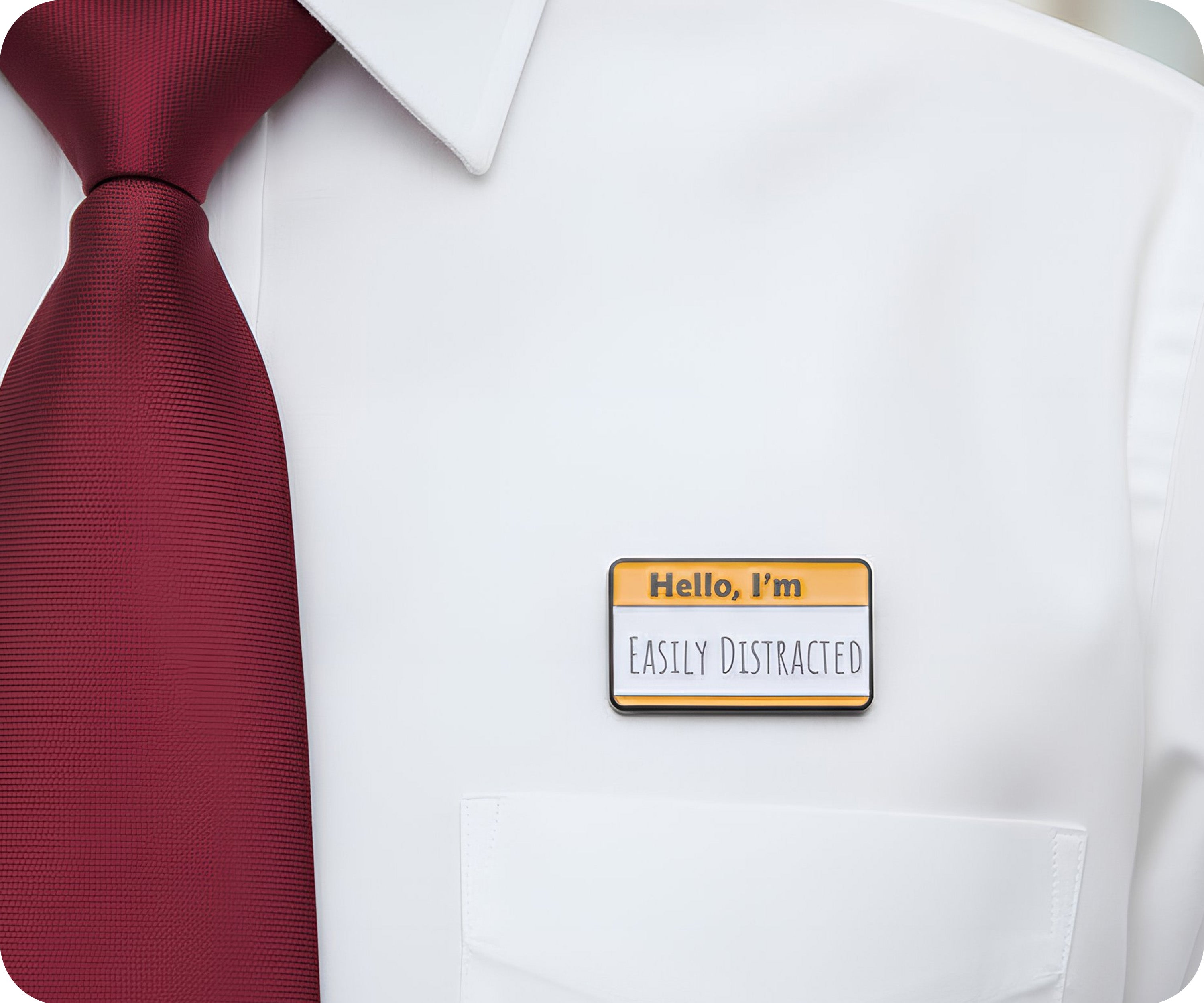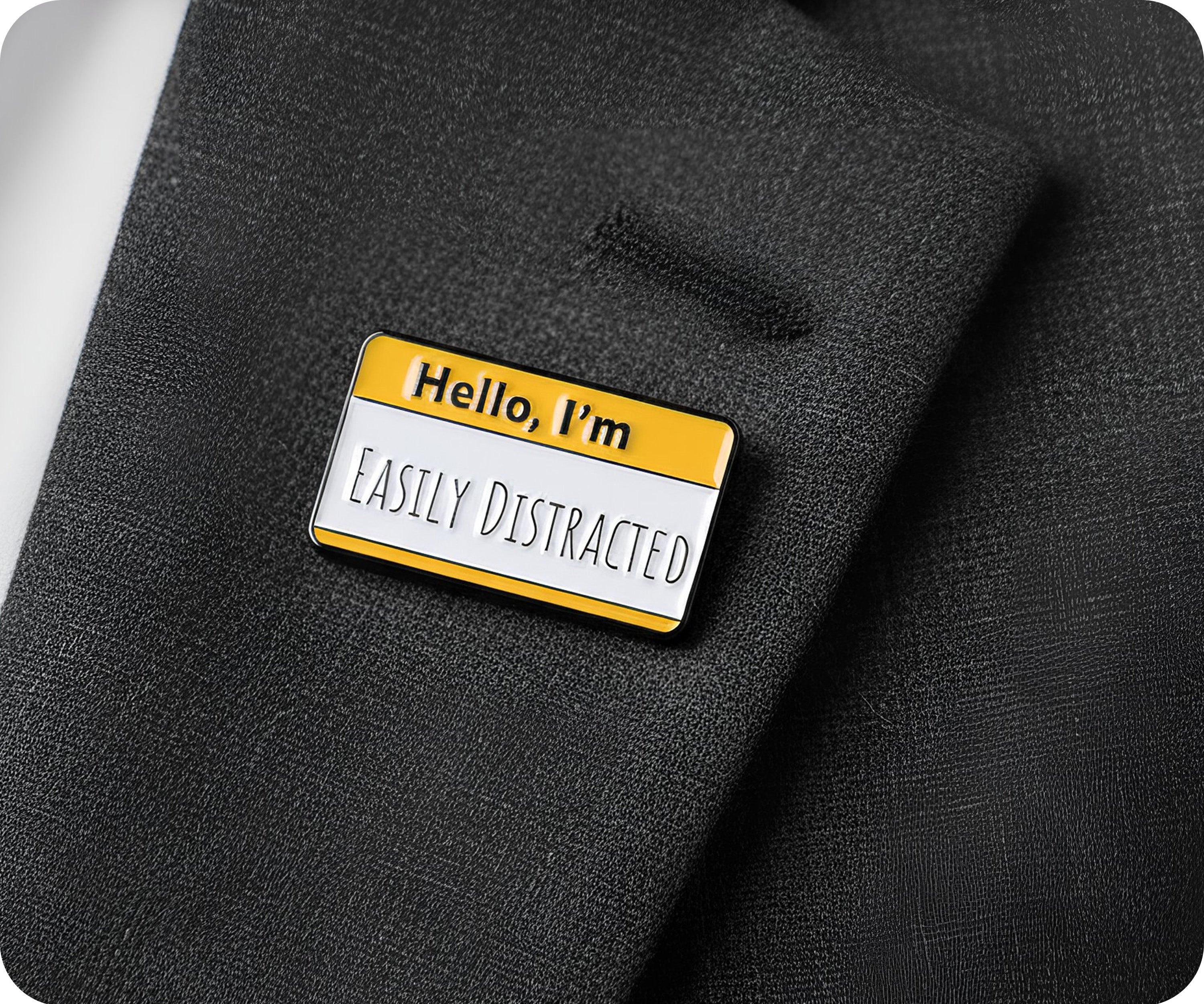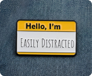 For the easily distracted, this playful pin badge is a must-have accessory. With its eye-catching design and quirky message, it's sure to spark conversations and add a touch of humor to any outfit. Perfect for those who don't take themselves too seriously!