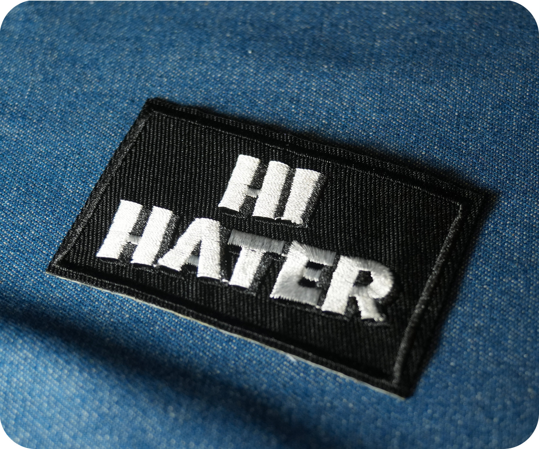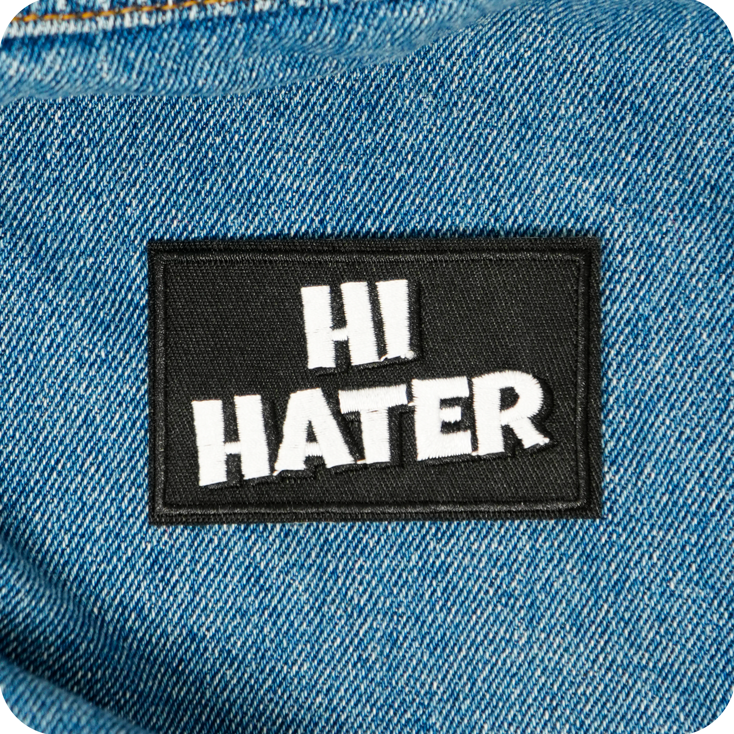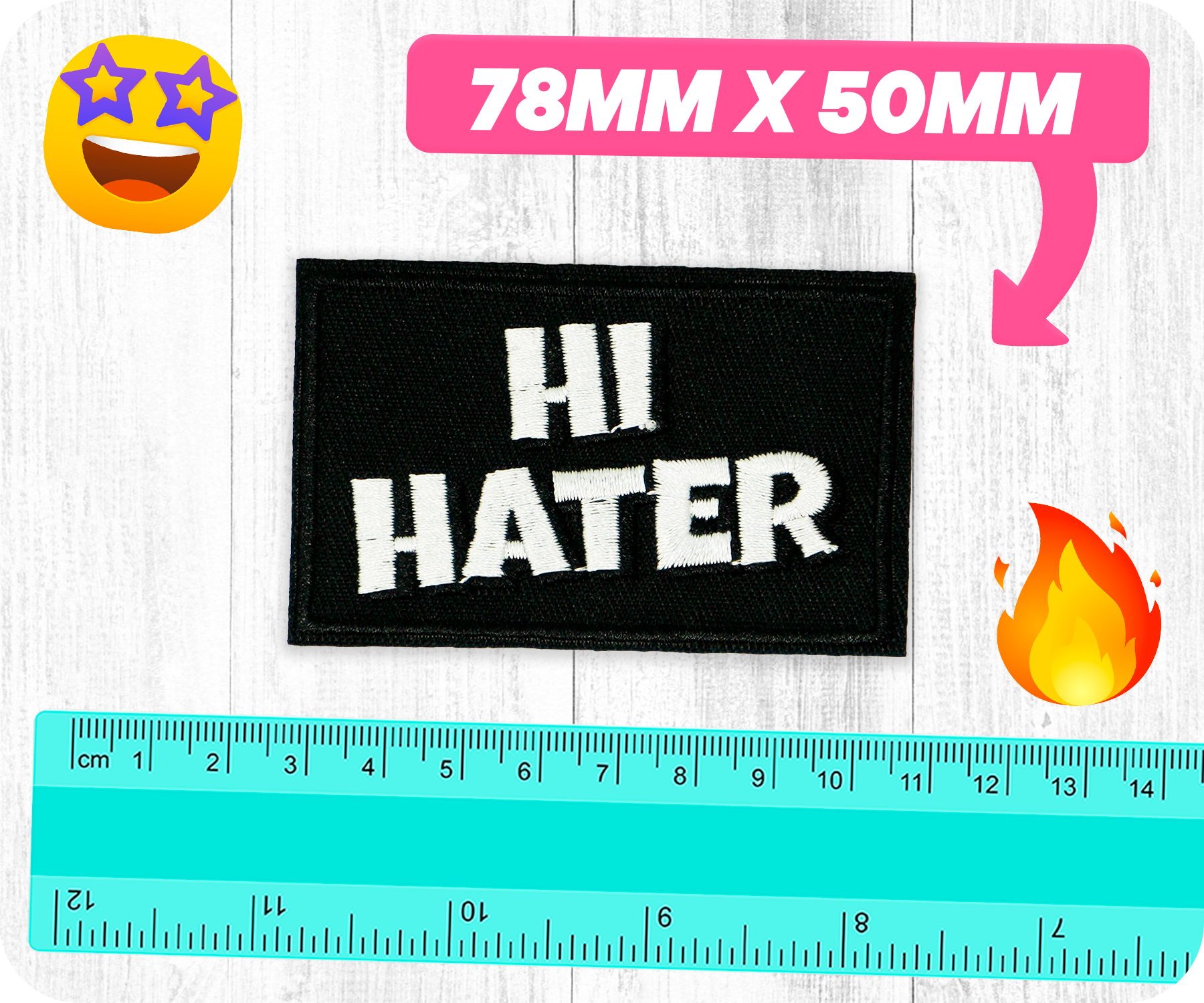 Hi Hater Black Iron On Patch (7.8 x 5cm)