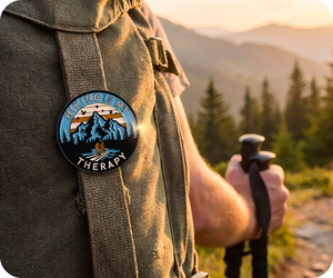 Declare your love of nature's healing power with this Hiking Is My Therapy Pin Badge. For the trail enthusiast who knows that fresh air, mountain views, and a good pair of boots beat any therapy session, this badge speaks volumes. Pin it to your backpack, jacket, or hiking hat and let the world know where you find your peace. A playful celebration of the mental health benefits of getting outdoors, moving your body, and leaving your worries at the trailhead, this badge proves that sometimes the best medicine comes with a view. Perfect for anyone who'd rather spend their time on peaks than in waiting rooms.