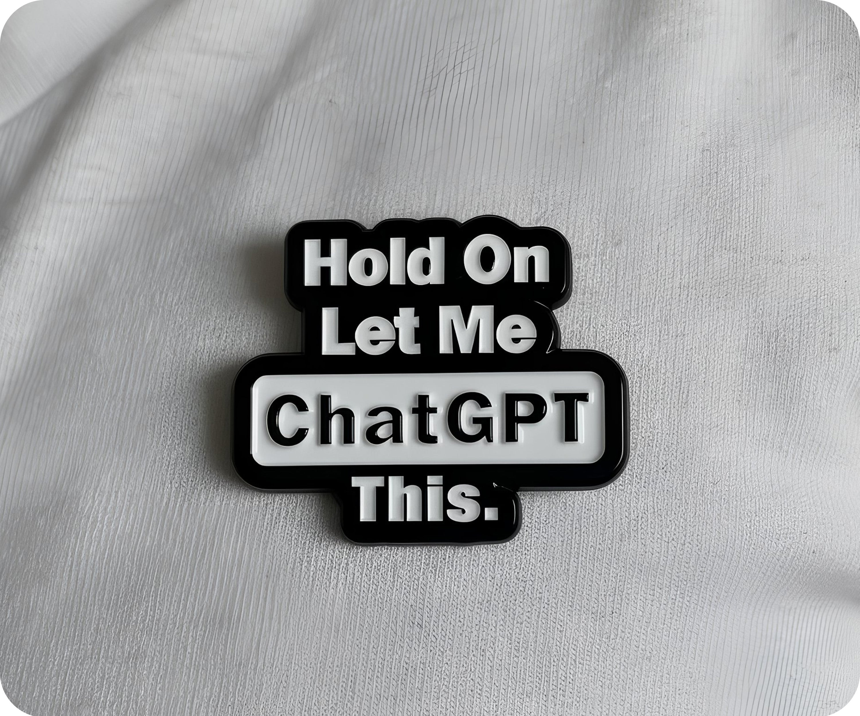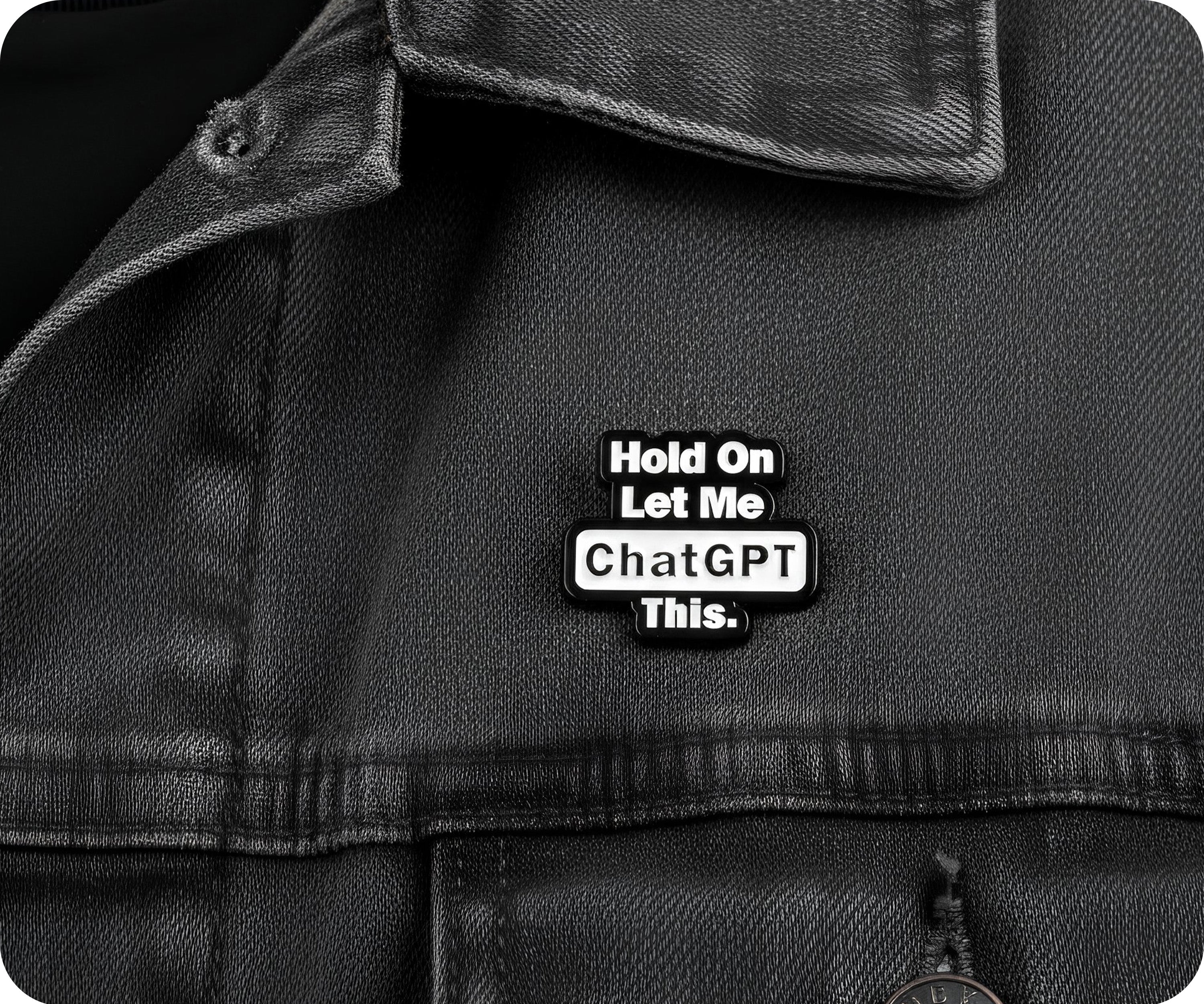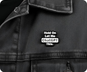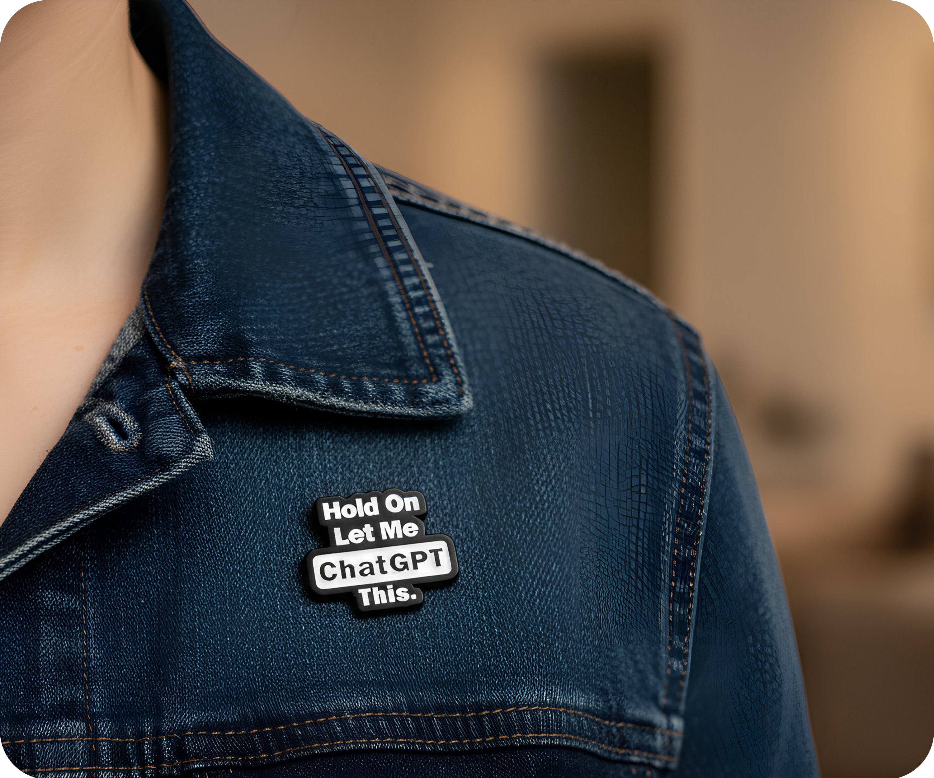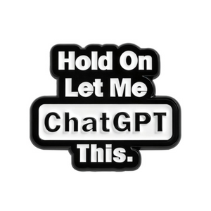 Hold On Let Me Chat GPT This Pin Badge For the tech-savvy and AI-curious! This witty pin badge is a hilarious nod to our modern obsession with asking artificial intelligence everything. Perfect for developers, students, office workers, and anyone who's ever paused mid-conversation to consult their favourite chatbot. Clip it to your laptop bag, backpack, or jacket and let fellow tech enthusiasts know you're in on the joke. A cheeky conversation starter that celebrates our quirky relationship with AI—because sometimes you really do need to ask the bot first!