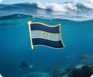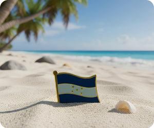 Celebrate Honduras with this vibrant flag pin badge! Featuring the distinctive blue and white stripes with its iconic stars, it's a perfect way to honour Central American heritage or show your love for this beautiful country. Pin it to your jacket, bag, or anywhere you want to display national pride. A tiny accessory with tremendous Honduran heart!