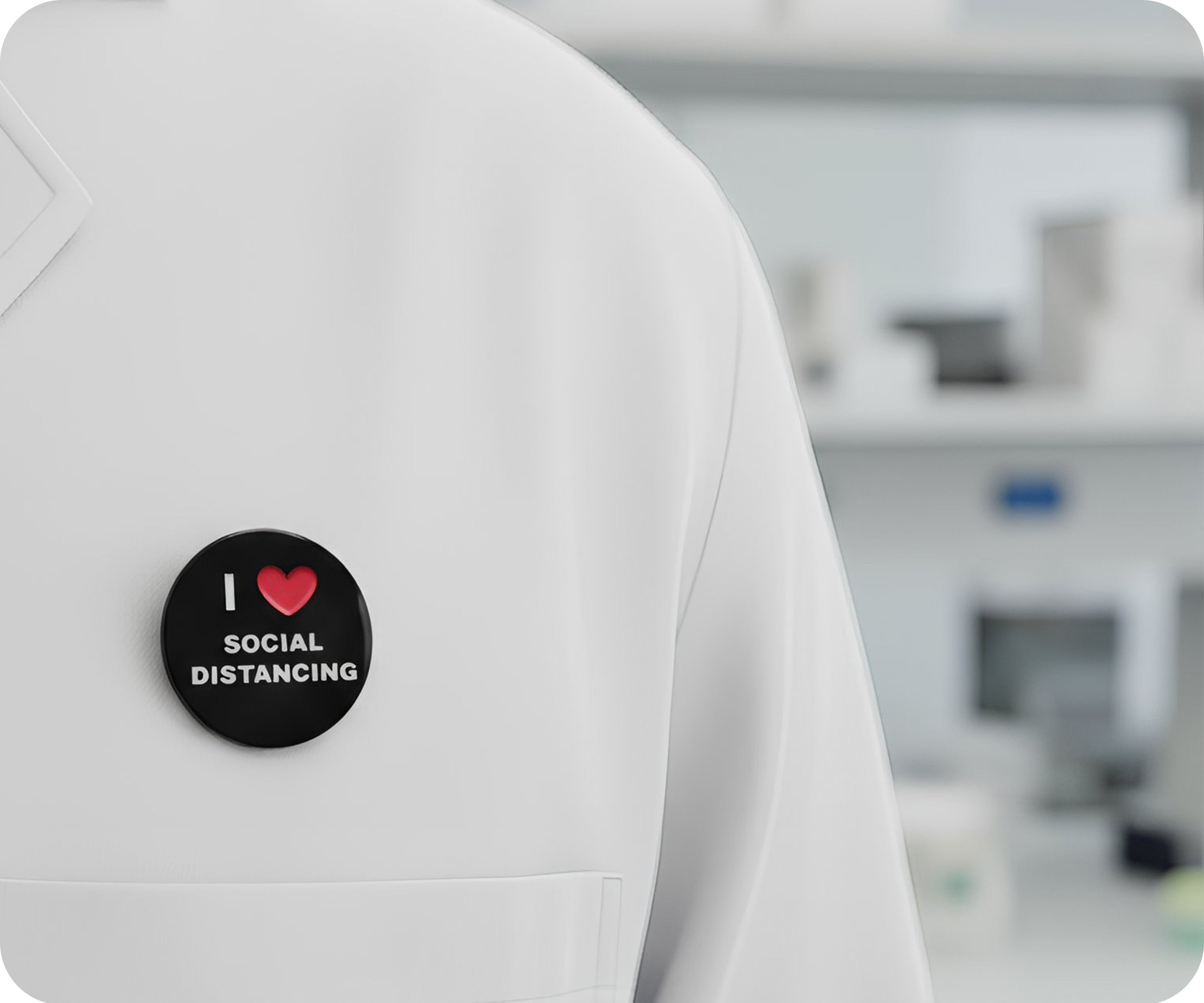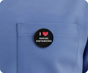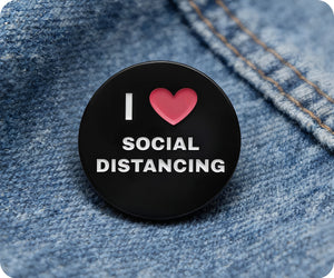 Show your love for social distancing with this playful pin badge! With its quirky design and fun message, it's the perfect accessory to show off your unique sense of style while also maintaining social distance. Get yours now and spread some quaran-tastic vibes!