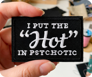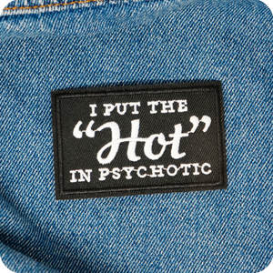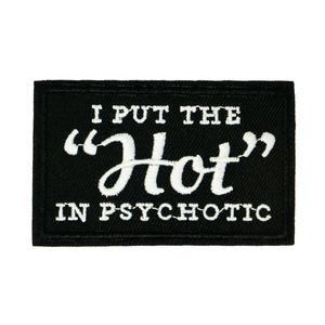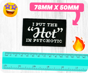I Put The Hot In Psychotic Black Iron On Patch (7.8 x 5cm)
