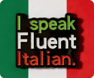 Buongiorno! Show off your Italian skills with our I Speak Fluent Italian Pin Badge. Perfect for language enthusiasts, this pin is sure to spark conversations. Ciao!