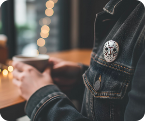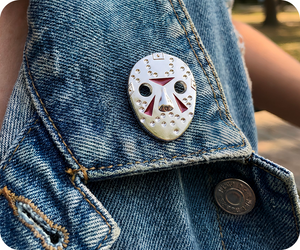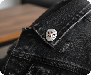 Channel your inner horror fan with this iconic Ice Hockey Mask Horror Pin Badge. Whether you're obsessed with slasher classics or just love the aesthetic of creepy cool, this badge brings some delightfully sinister style to your collection. Pin it to your jacket, backpack, or anywhere you want to signal your love of all things spooky and thrilling. A fun nod to horror cinema's most recognisable imagery, perfect for film buffs who appreciate the genre's campy charm and genuine scares. Wear it with pride and let fellow horror enthusiasts know you're one of them.