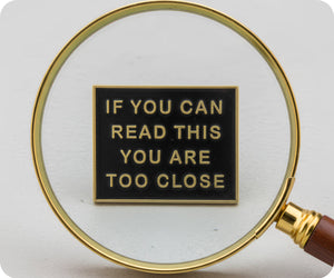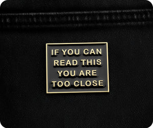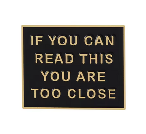 Keep your distance in a playful way with this "If You Can Read This You Are Too Close" pin badge. A fun way to remind others of social distancing while showing off your sense of humor. A quirky addition to any pin collection!