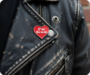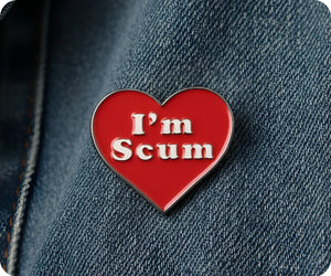 Express your scummy love with this quirky heart-shaped pin badge. Made for the unapologetically mischievous, it's the perfect accessory to add a touch of playful rebellion to any outfit. Wear it with pride (or shame, we won't judge) and let your inner scum shine through!