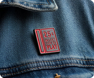 Unlock retro charm with the Insert Coin To Play 25c Pin Badge. Simply insert a coin to reveal this quirky pin badge that doubles as a playful nod to vintage arcade games. Add a touch of nostalgia to your outfit or gift it to a friend who loves all things retro.