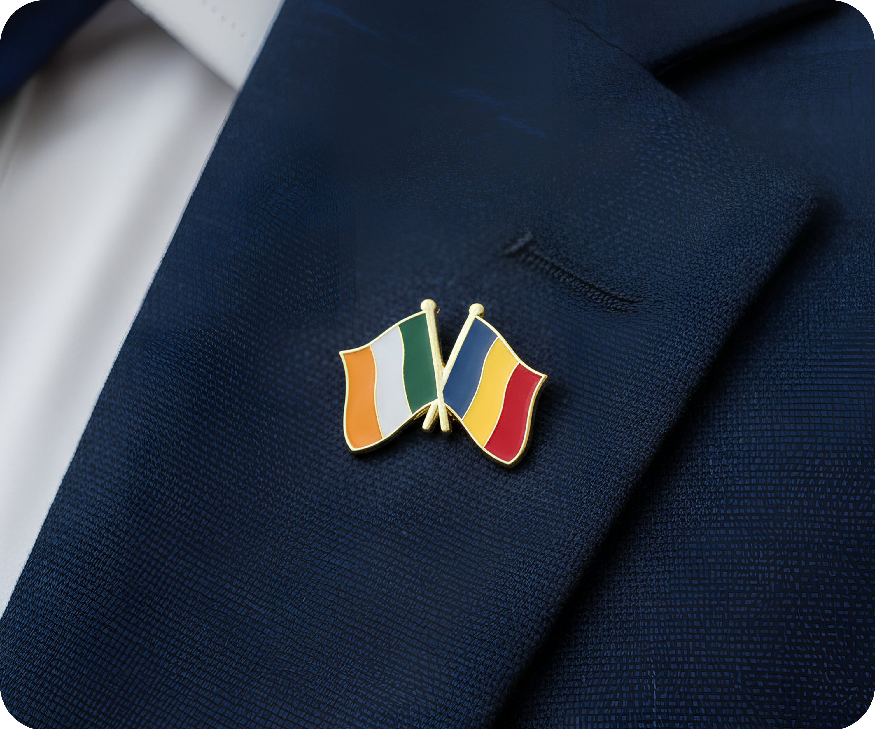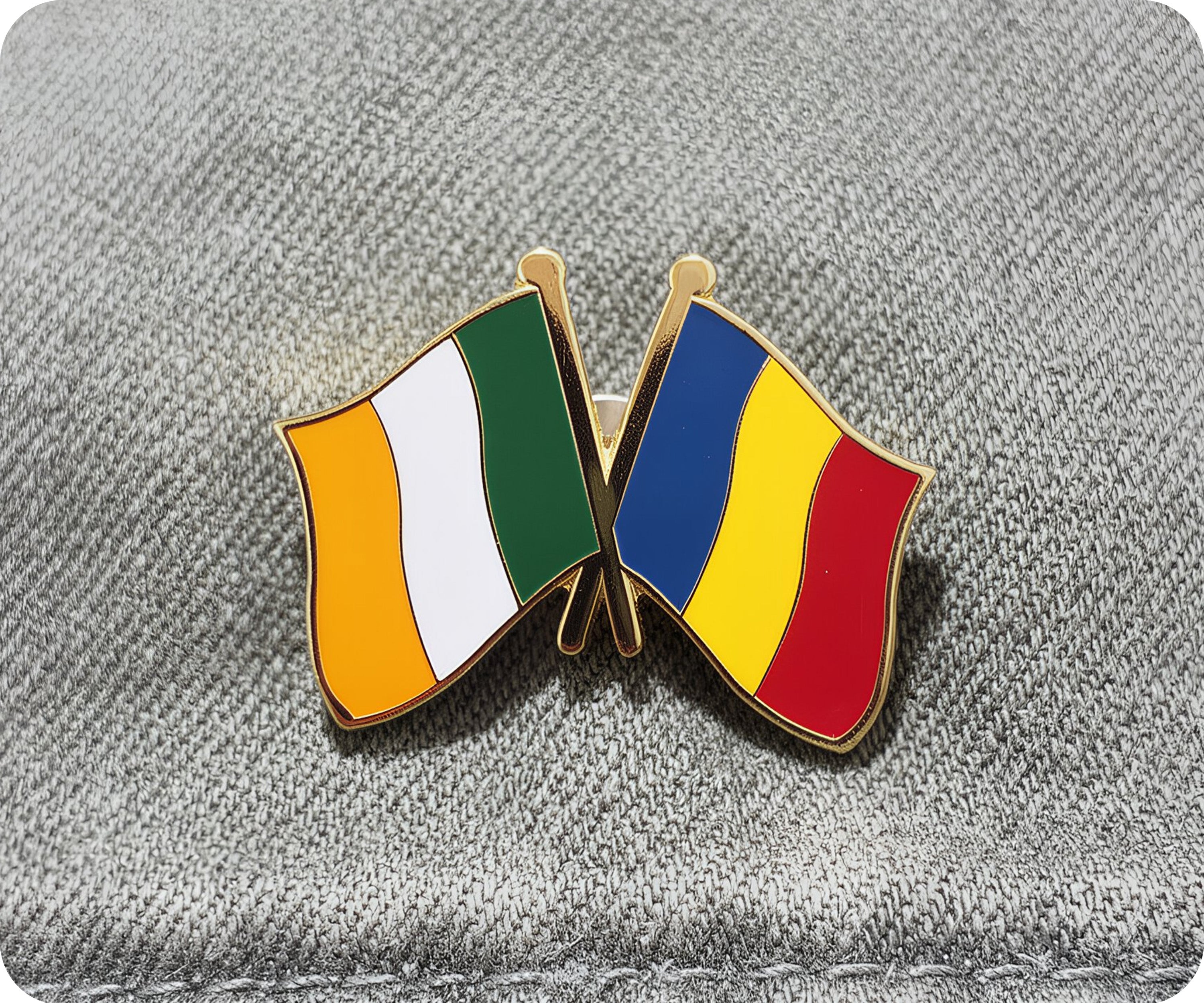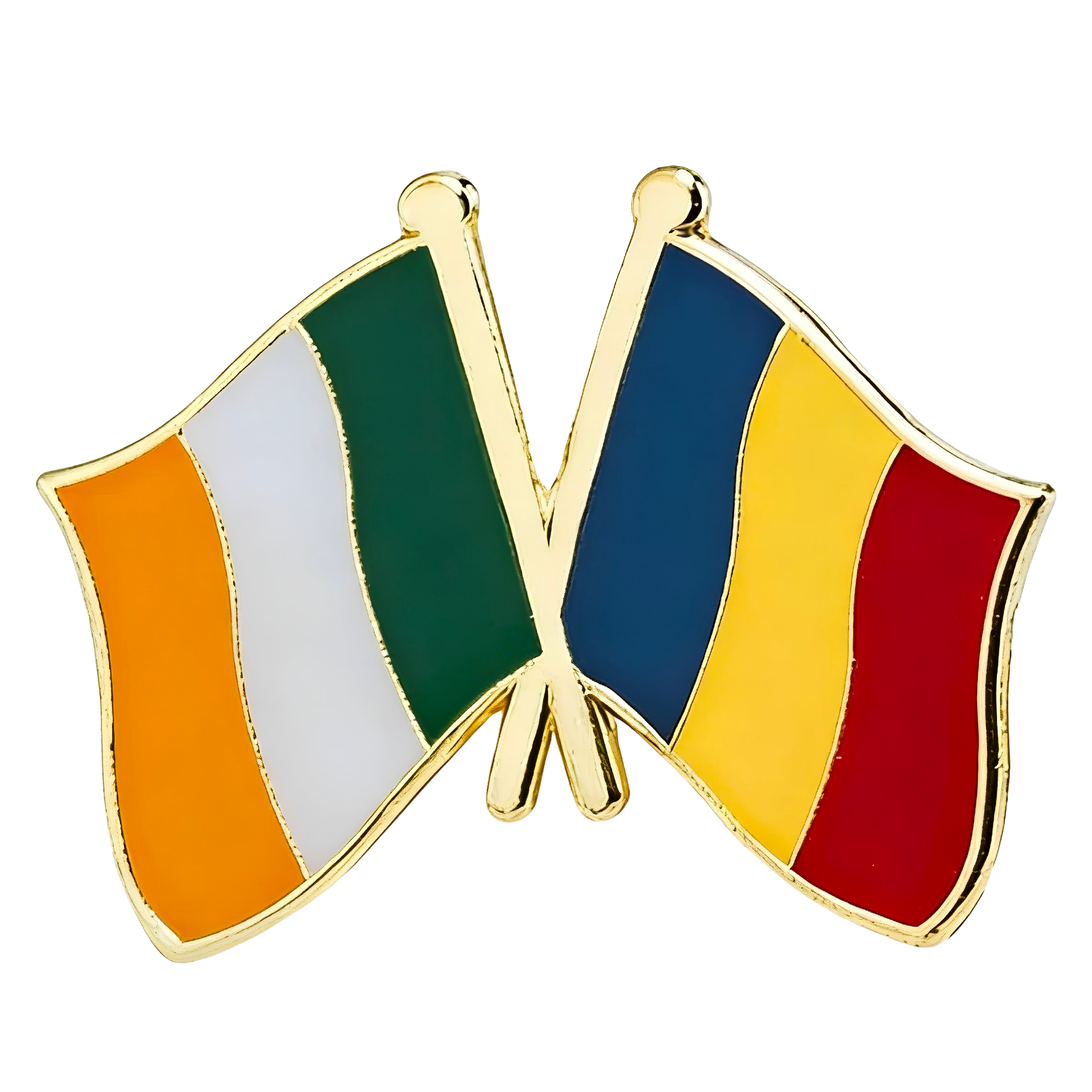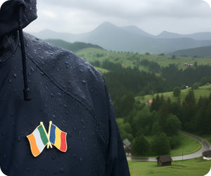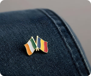 ¡Muestra tu amor por Irlanda y Rumania con este peculiar pin de amistad! Este pin, que presenta las dos banderas entrelazadas, es una forma divertida de representar vuestro vínculo. Llévalo con orgullo o regálalo a tu dúo irlandés-rumano favorito. ¡Juntos, estamos haciendo sham-rock!