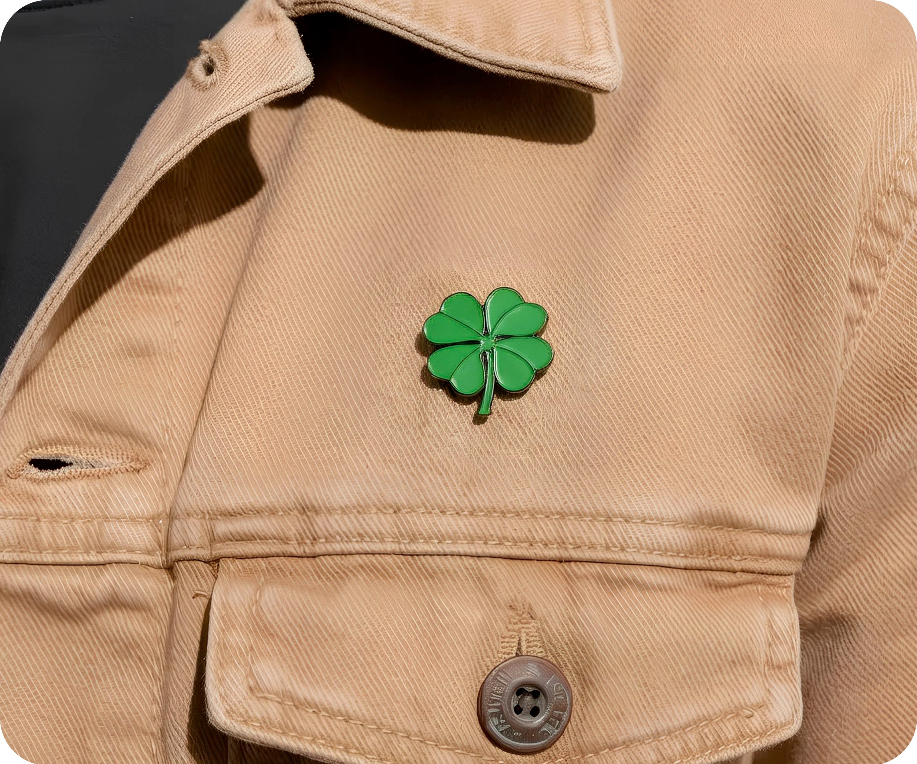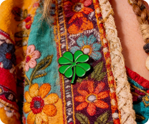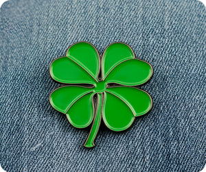 ¡Lleva un poco de buena suerte contigo a donde quiera que vayas con este pin con forma de trébol de cuatro hojas irlandés! Muestra tu orgullo y tu herencia irlandesa con este accesorio peculiar y divertido. Perfecto para el Día de San Patricio o cualquier día en el que necesites un poco de suerte extra (guiño, guiño).