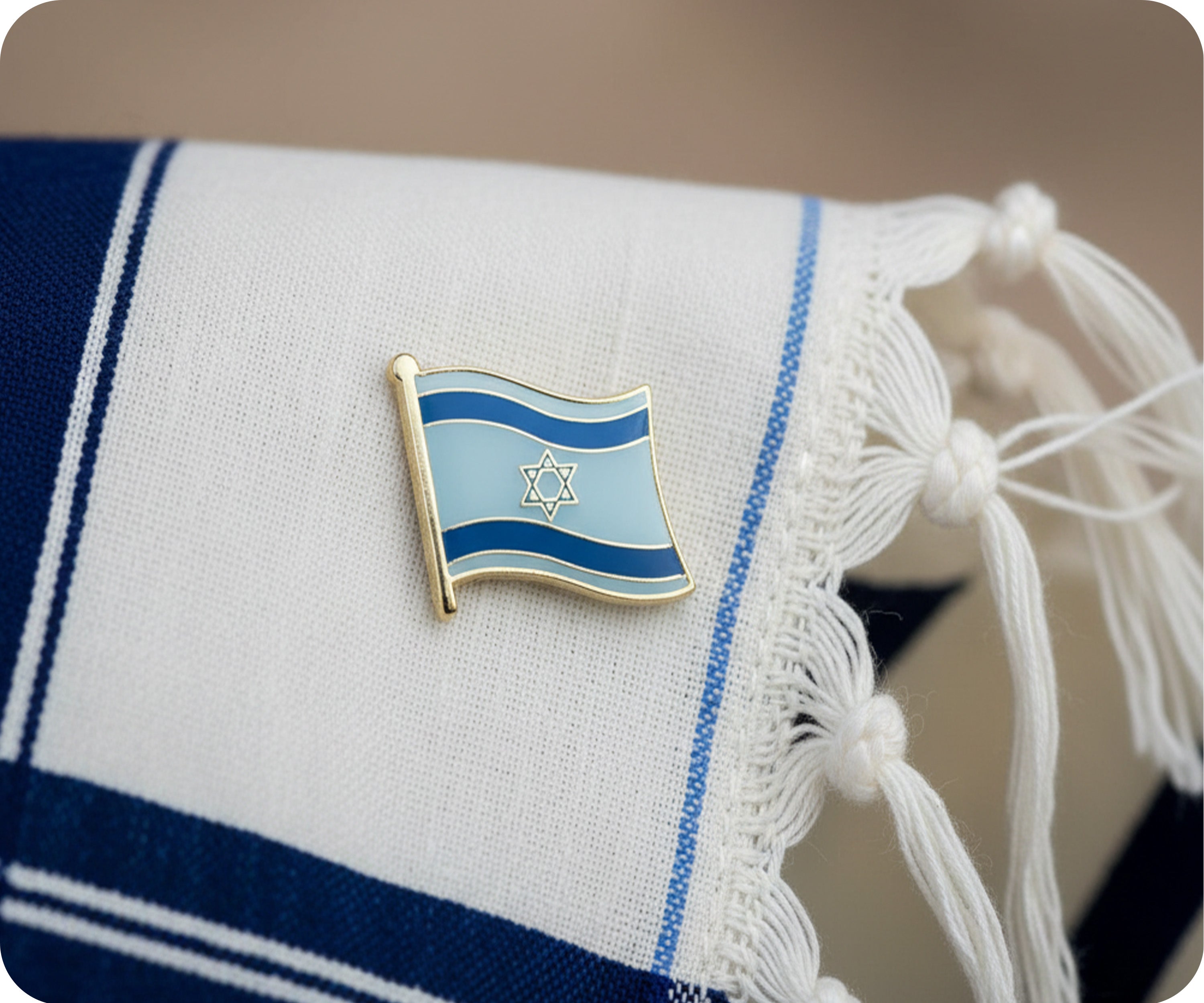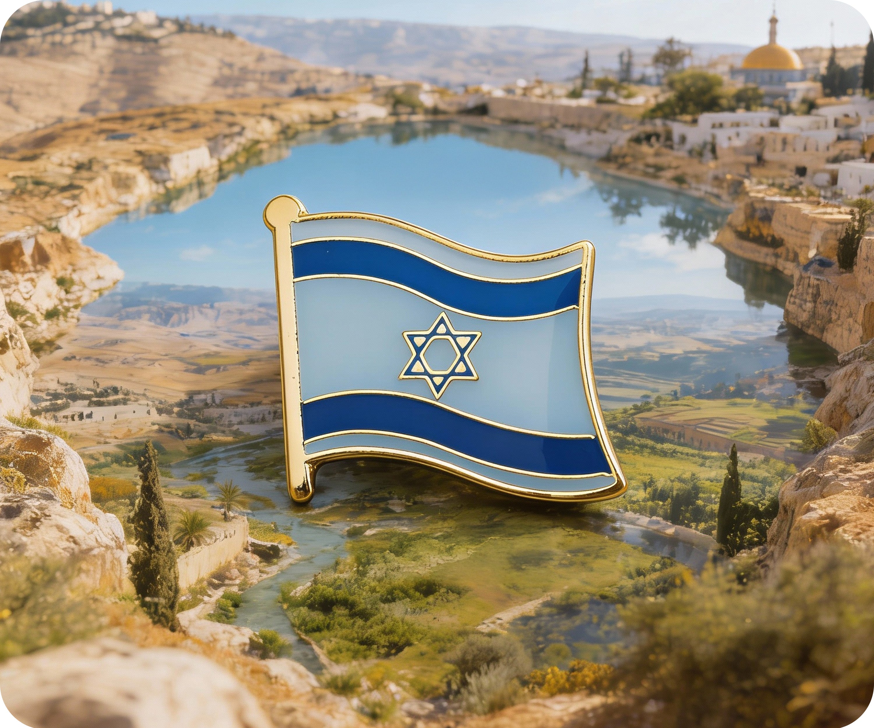 Esta insignia con la bandera de Israel te ayuda a mostrar con orgullo tu patriotismo y apoyo a Israel. Está hecha de esmalte duro y tiene un cierre de mariposa de metal. Consigue tu insignia con la icónica bandera de Israel. ¡Muestra tu orgullo y apoyo a Israel!