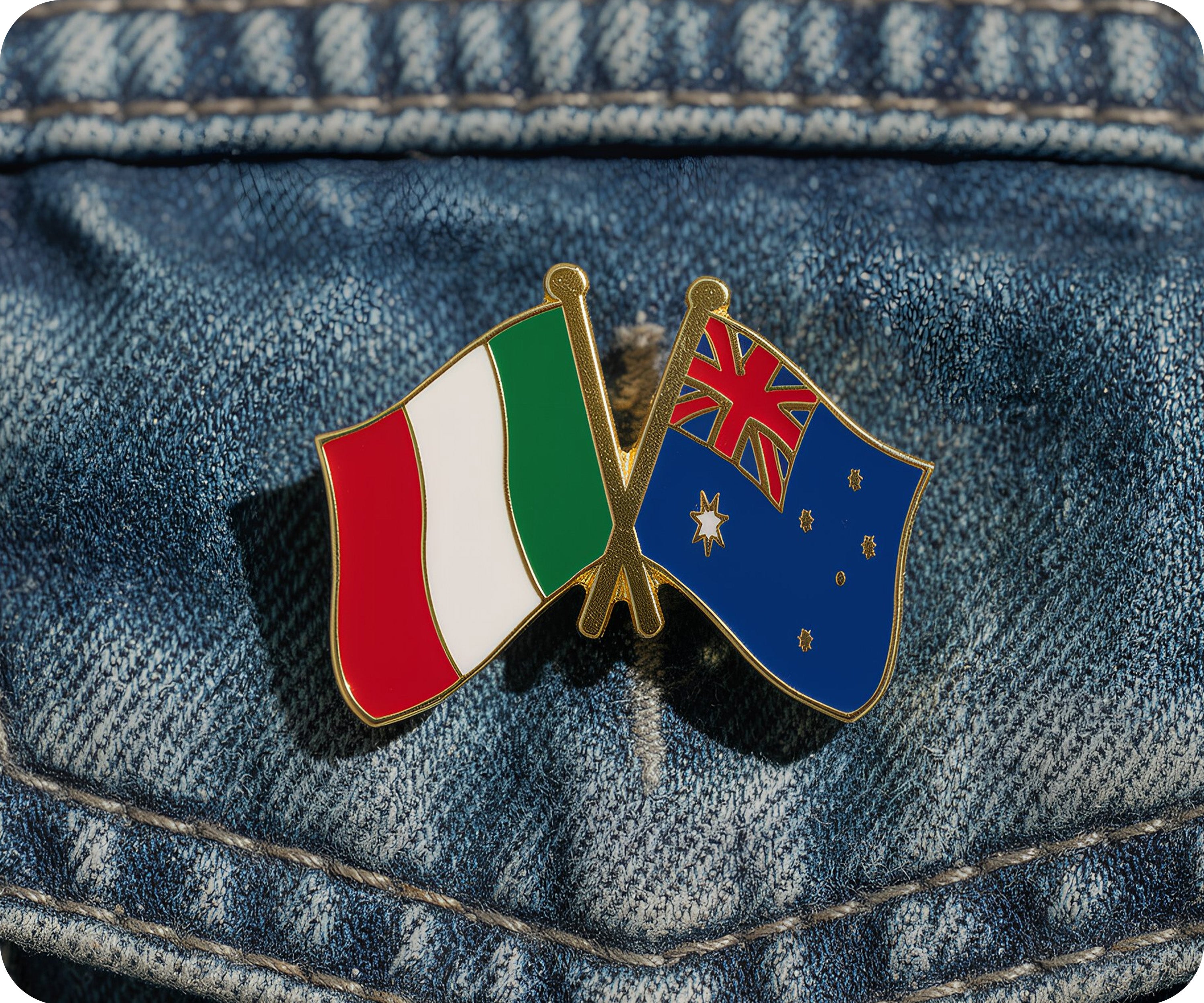 ¡Presume de amistad con este pin de la amistad entre Italia y Australia! El accesorio perfecto para mostrar tu conexión con estos dos países. Llévalo con orgullo y celebra el vínculo con tus seres queridos. Una forma divertida y única de expresar tu amistad internacional (¡sin las cursis pulseras a juego!).