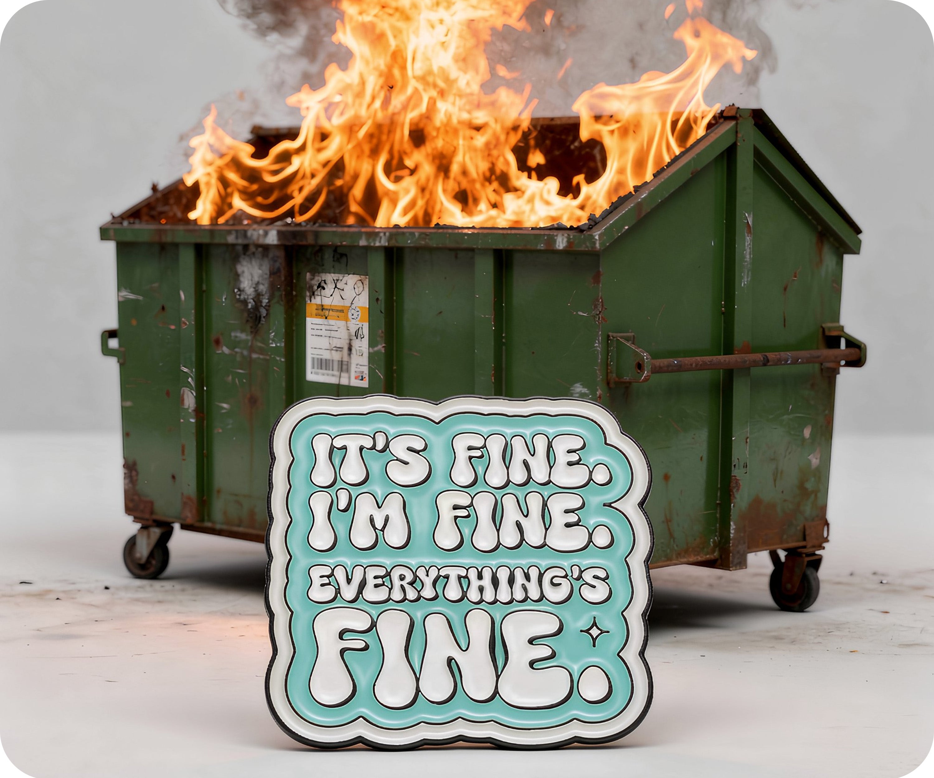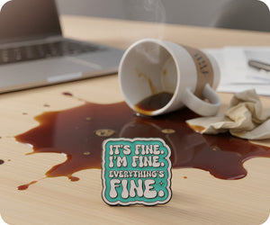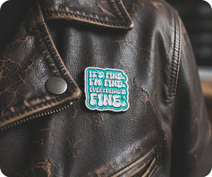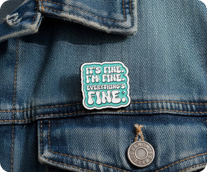 Introducing the "It's Fine, Everything Is Fine" pin badge - for those days when you just need to remind yourself that everything will be okay. Wear this quirky accessory and spread positivity wherever you go.