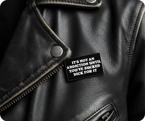 It's Not An Addiction Unless You've Sucked Dick For It Pin Badge A cheeky pin badge for liquorice lovers with a wicked sense of humour! This playful accessory celebrates the ultimate test of true addiction—and yes, we're talking about those beloved Dick lollies. Perfect for sweet-toothed rebels and anyone who appreciates bold, tongue-in-cheek humour, this badge is guaranteed to raise eyebrows and spark laughs. Attach it to your bag or jacket and wear your confectionery passion with pride. Small badge, big personality!
