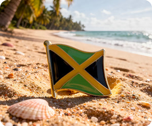 Esta insignia con la bandera de Jamaica te ayuda a mostrar con orgullo tu patriotismo y apoyo a Jamaica. Está hecha de esmalte duro con una mariposa de metal. Consigue tu insignia con la icónica bandera de Jamaica. ¡Muestra tu orgullo y apoyo a Jamaica!