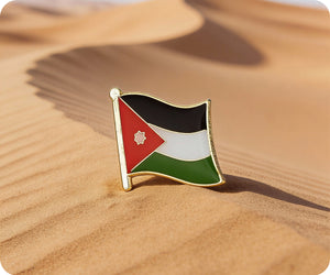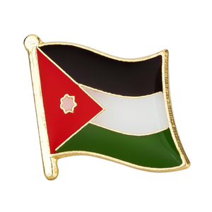 Esta insignia con la bandera de Jordania te ayuda a mostrar con orgullo tu patriotismo y apoyo a Jordania. Está hecha de esmalte duro y tiene un cierre de mariposa de metal. Consigue tu insignia con la icónica bandera de Jordania. ¡Muestra tu orgullo y apoyo a Jordania!