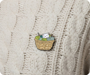 Kitten In Wool Knitting Basket Pin Badge