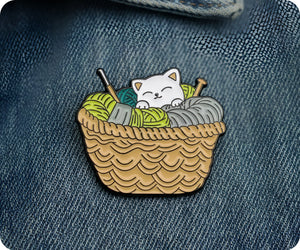 Add some purr-sonality to your outfit with this adorable Kitten In Wool Knitting Basket Pin Badge. This playful accessory is perfect for cat lovers and knitting enthusiasts alike. With its quirky design and high-quality construction, it's sure to make a statement wherever you go. Meow-nificent!
