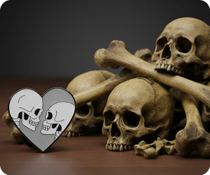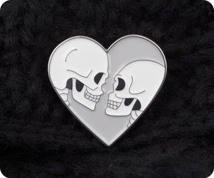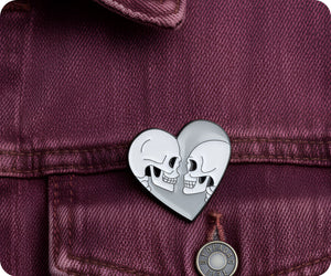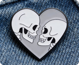 Show off your unique style with our Love Heart Skull Couple Pin Badge! Featuring a playful design of two skulls forming a heart shape, this pin badge is the perfect accessory for any outfit. With its quirky and fun design, it's sure to make a statement and add a touch of humor to your look. Don't be afraid to show off your love for skulls and love with this fun pin badge!